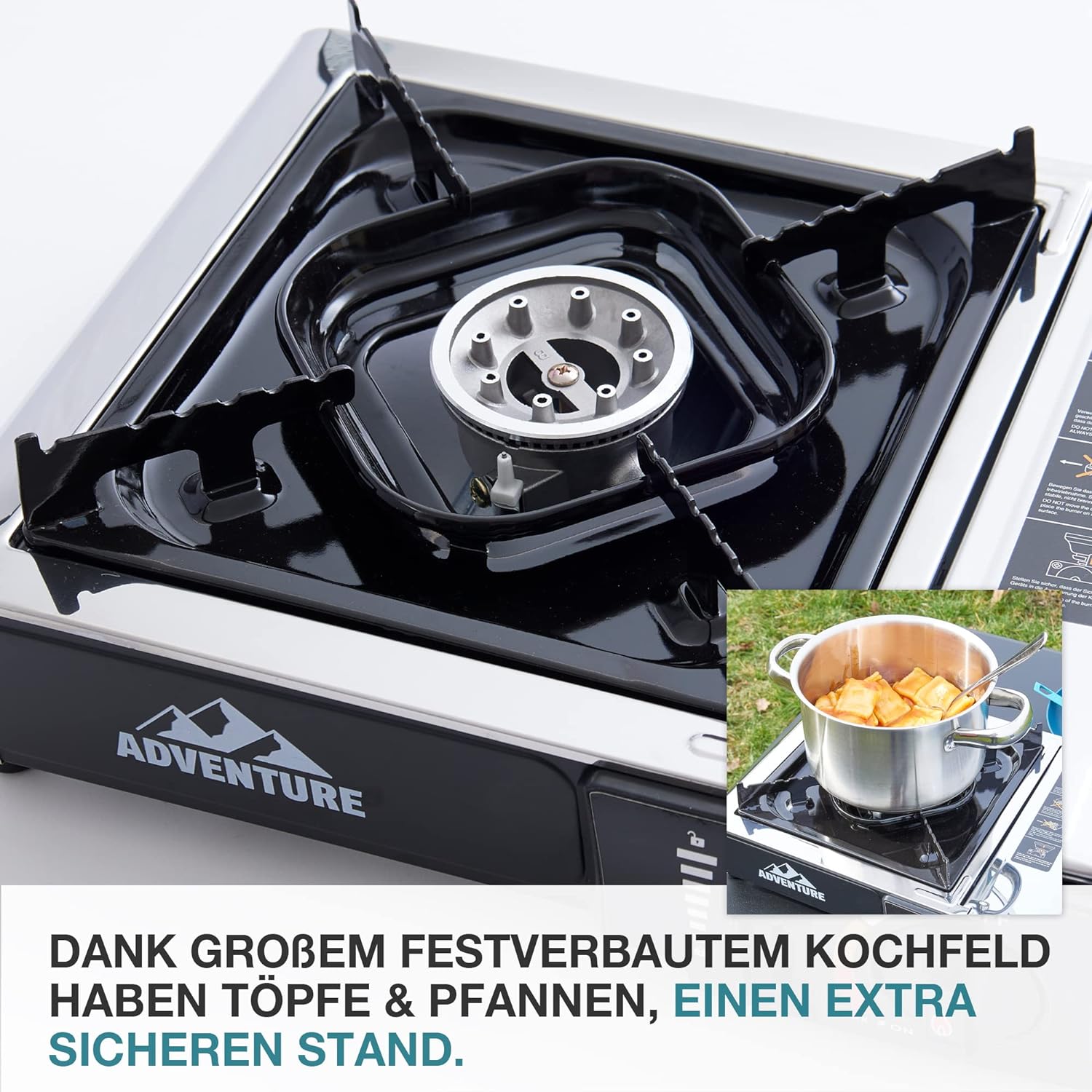 Egal ob Mittag- oder Abendessen, der Gaskocher bereitet Ihre Mahlzeiten schnell zu. Mit dem TOM Edelstahl Gaskocher-Set sind Sie bestens für Ihre Outdoor-Abenteuer gerüstet. Genießen Sie die bewährte TOM Markenqualität und machen Sie Ihre Outdoor-Erlebnisse komfortabler und sicherer.