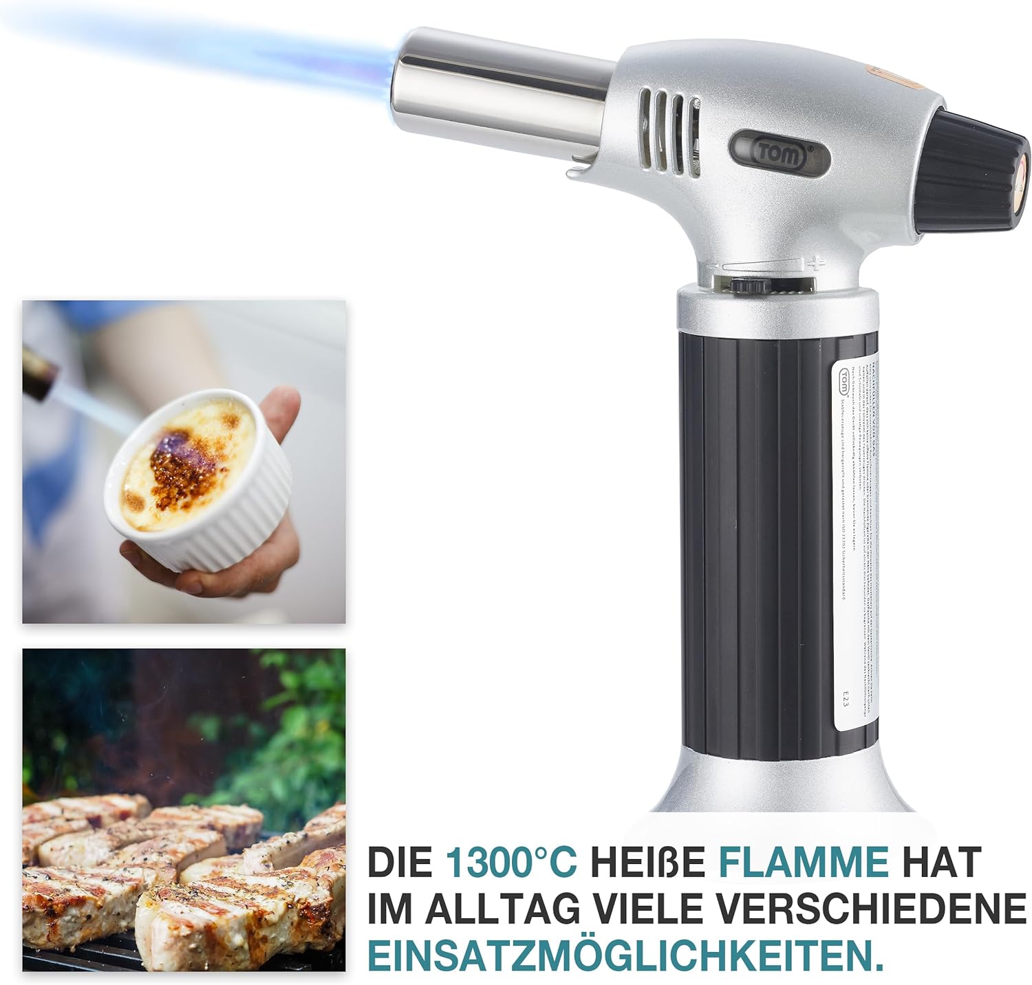 • BESONDERS PRAKTISCH – Der TOM Flambierbrenner kann im Alltag beispielsweise in der Küche, für den Grill oder beliebig als Feuerzeug verwendet werden