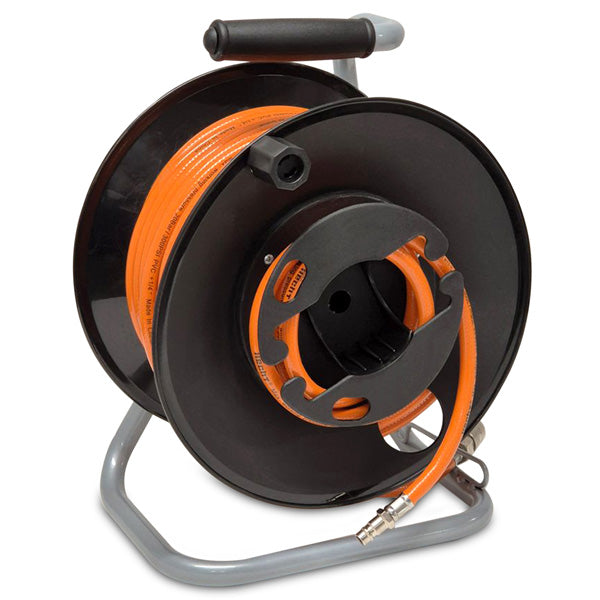 Das Trommelgestell mit verstärkten Scheiben und komfortabler Kurbelknau garantiert einfaches Auf- und Abrollen.