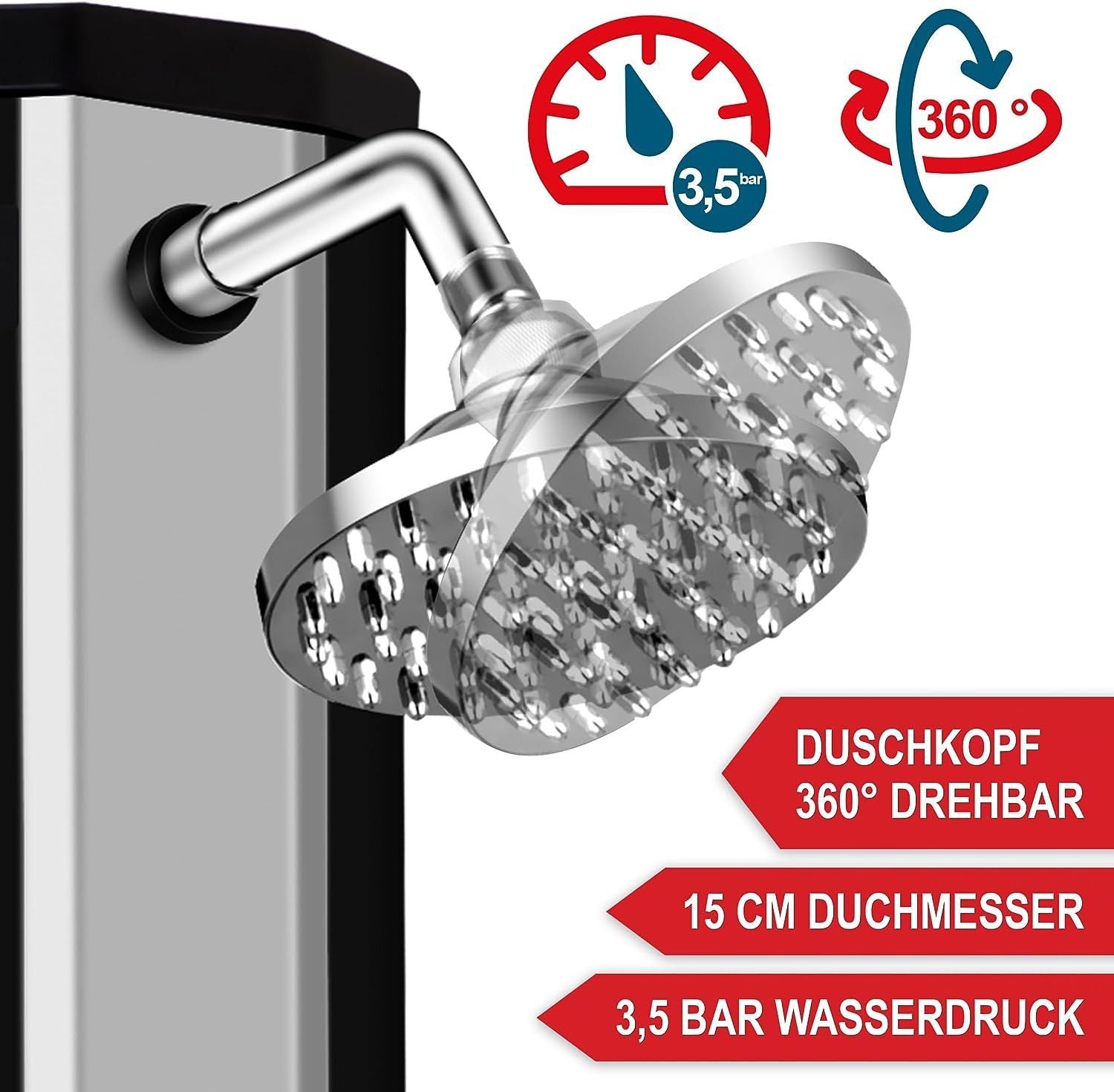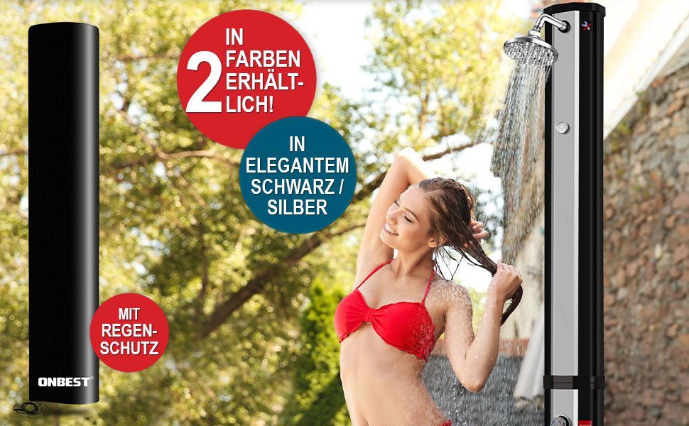 Dusche Solardusche Garten mit Regenschutz Solar Outdoor 35 Liter Schwarz Silber