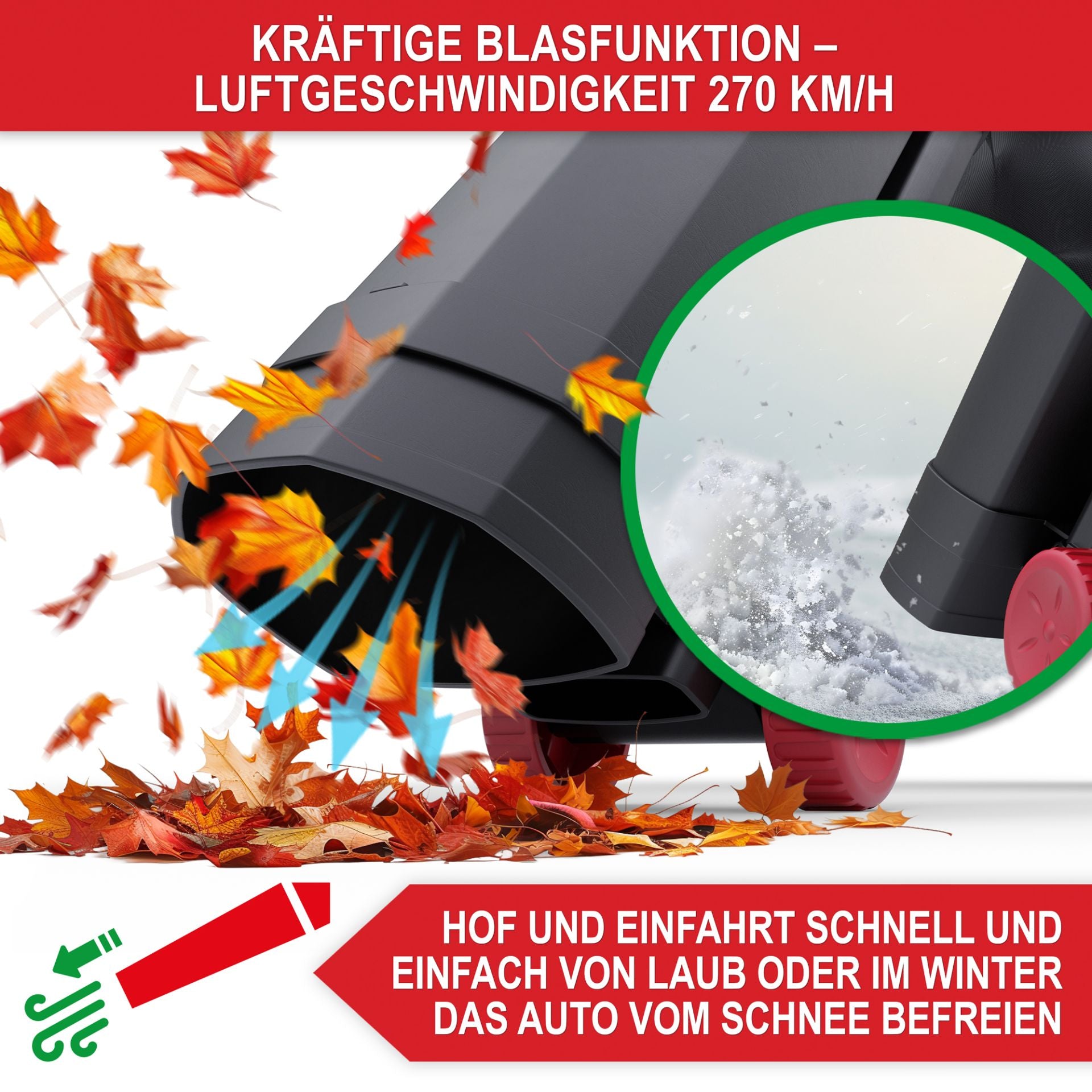 - Luftgeschwindigkeit von 270 km/h für effiziente Laubentfernung