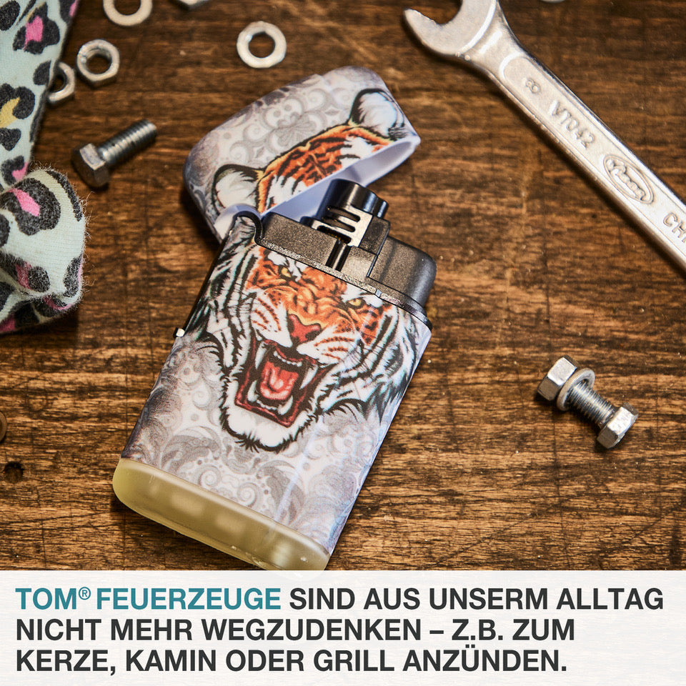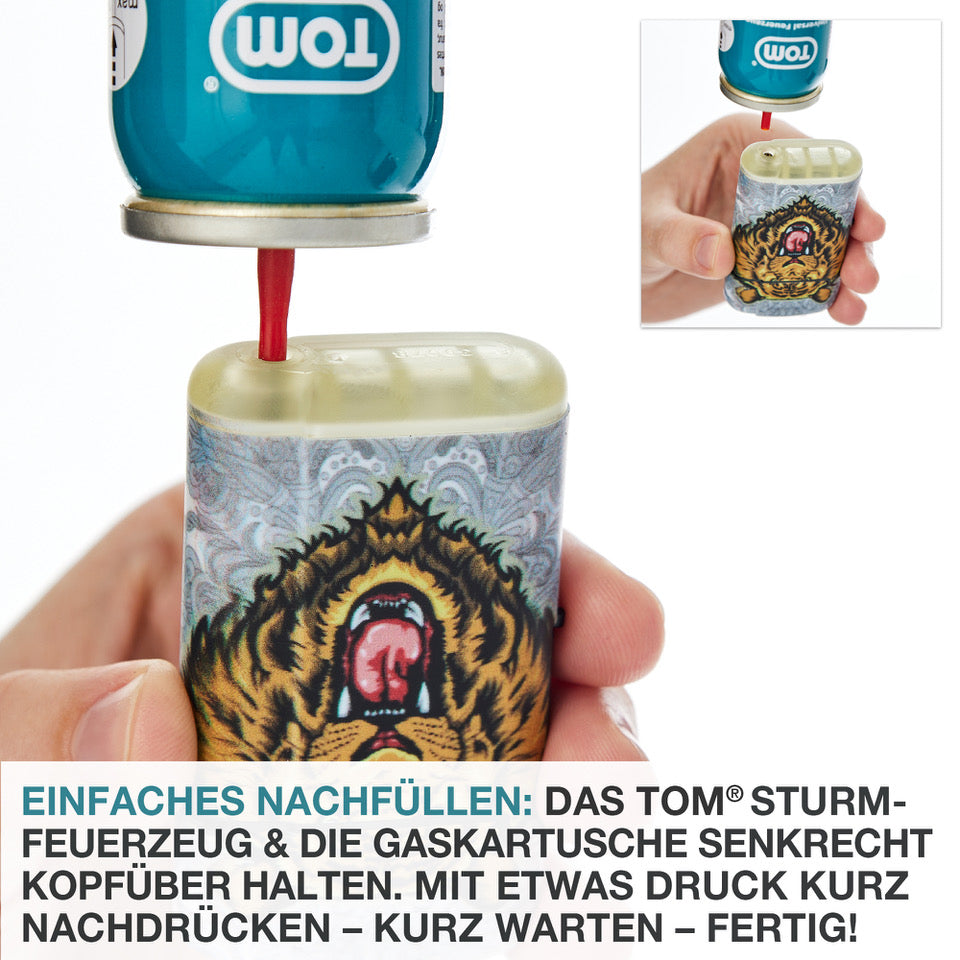 - LANGANHALTENDE LEISTUNG – Das TOM Tischfeuerzeug ist mit einem Propan-/Butangasgemisch von höchster Reinheit & Qualität abgefüllt für eine außergewöhnliche lang anhaltende Leistung. Nachfüller