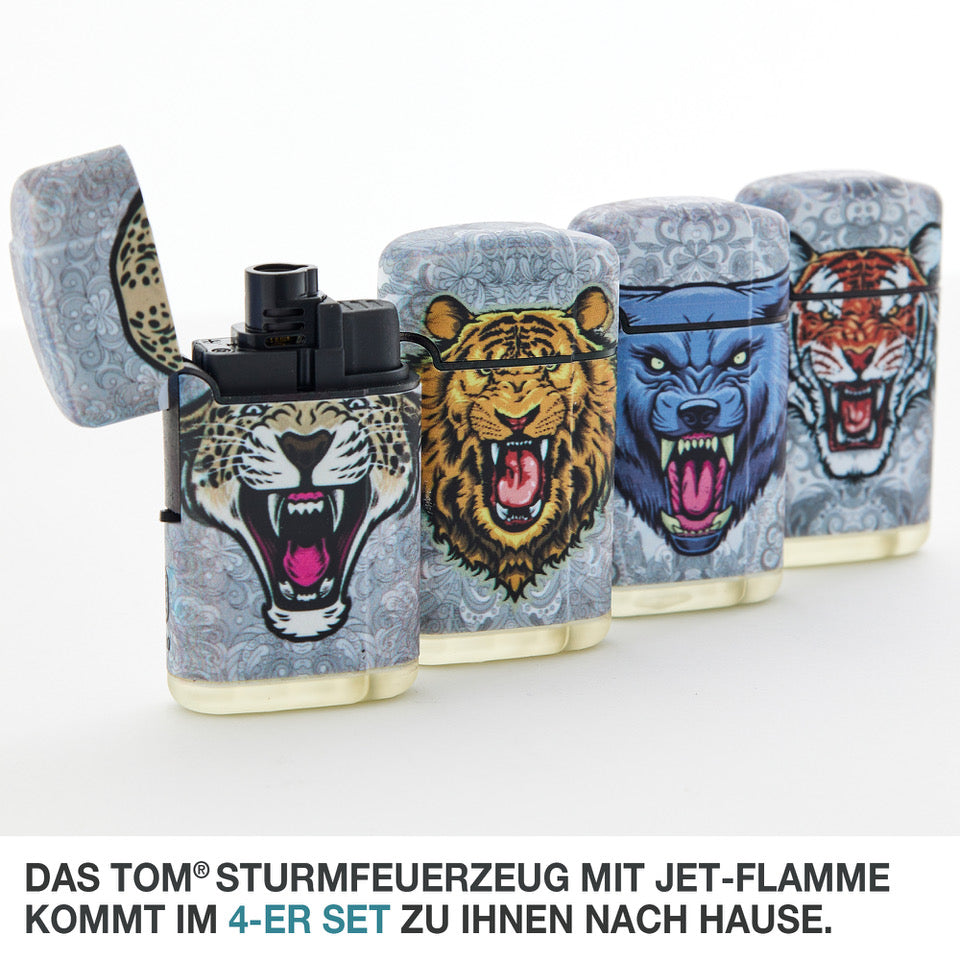 - WINDFESTE JETFLAMME – Die windfeste konzentrierte Jet Flamme (bis zu 1300°C) der TOM Sturmfeuerzeuge lässt sich zuverlässig & leicht entzünden. 4er Set mit Schutzkappe an jedem Feuerzeug