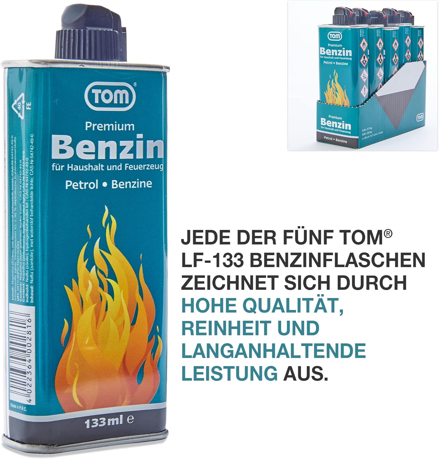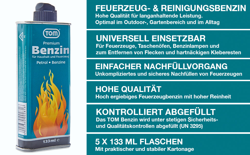 TOM Feuerzeugbenzin 5 x 133 ml
