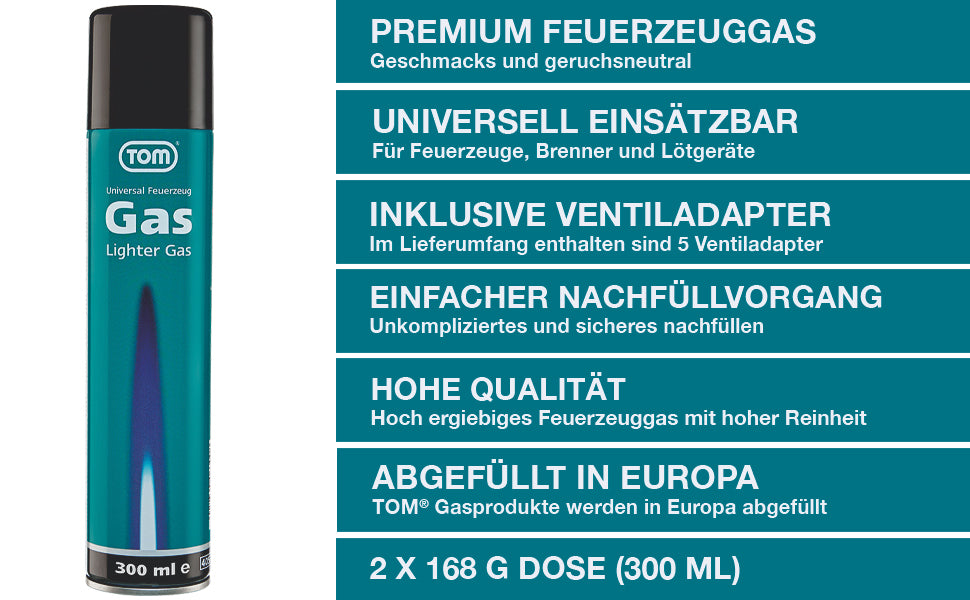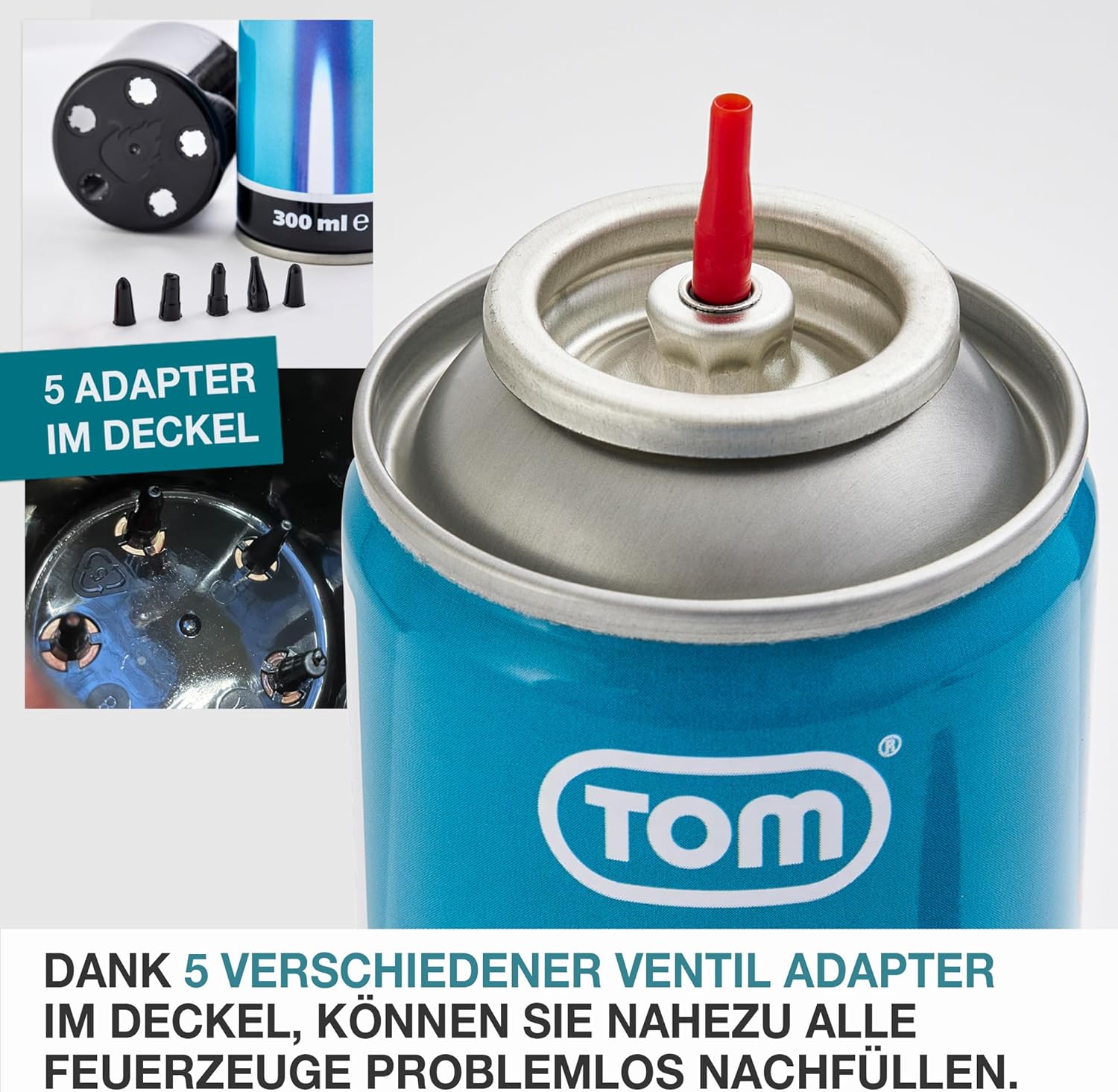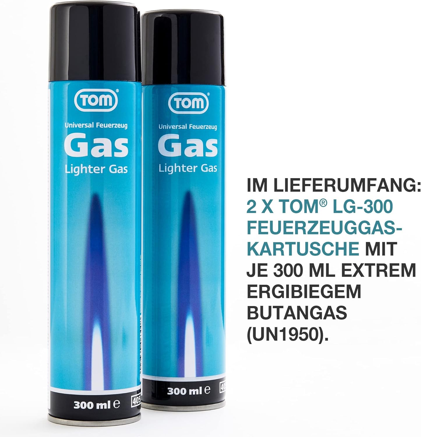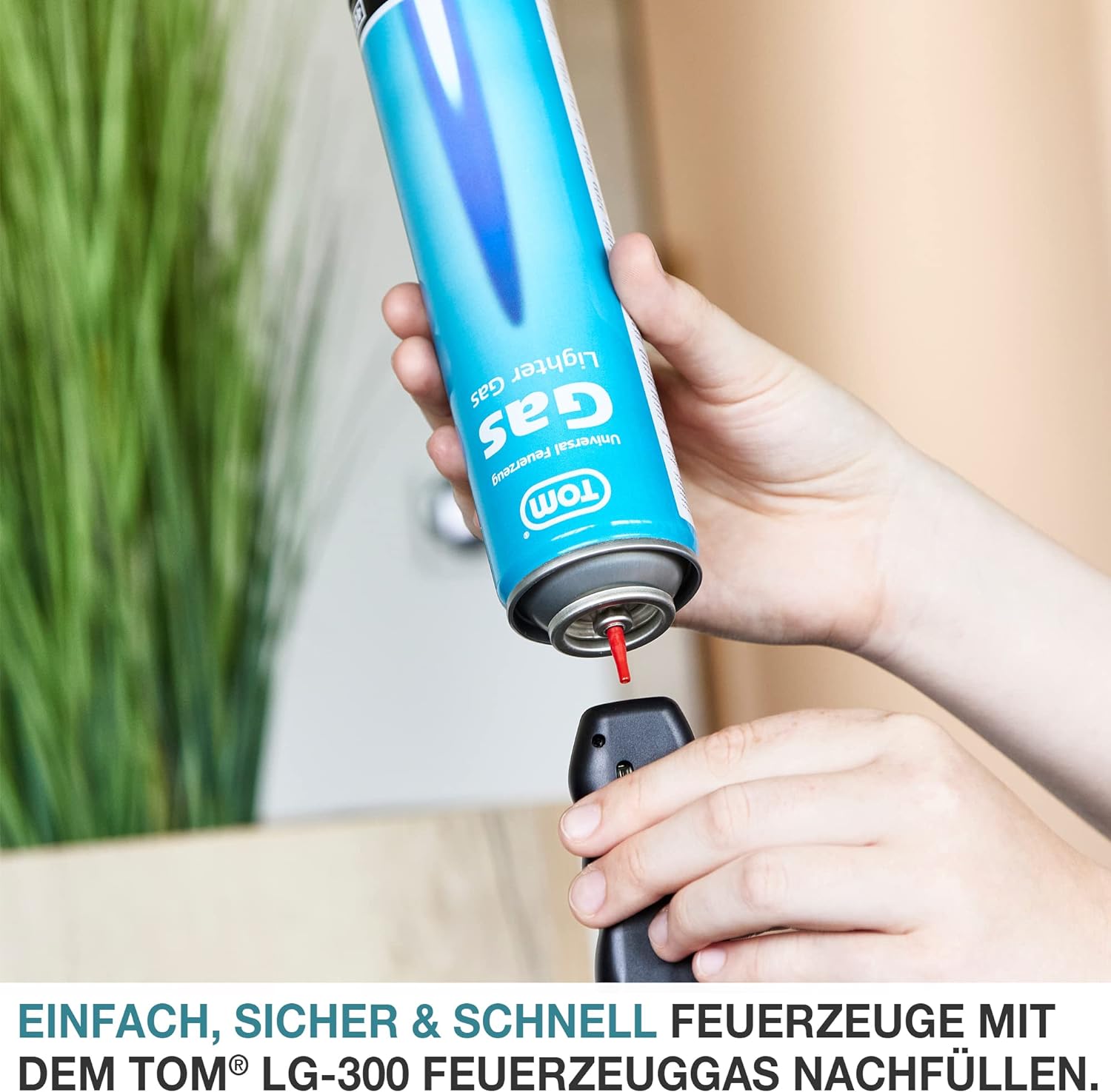 Feuerzeuge sind unverzichtbar in unserem Alltag. Ob für Sturmfeuerzeuge, Stabfeuerzeuge oder Küchenbrenner – ohne Flamme geht nichts. Mit der TOM Universal Feuerzeug Gas Nachfüllkartusche LG-300 haben Sie immer eine Lösung parat. Das hochwertige Butangas eignet sich ideal zum Nachfüllen aller Arten von Feuerzeugen.
