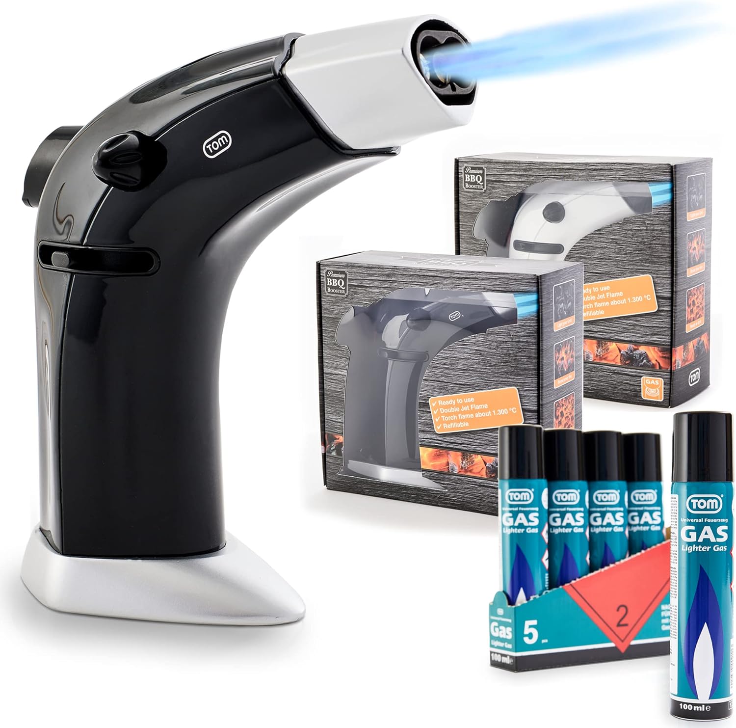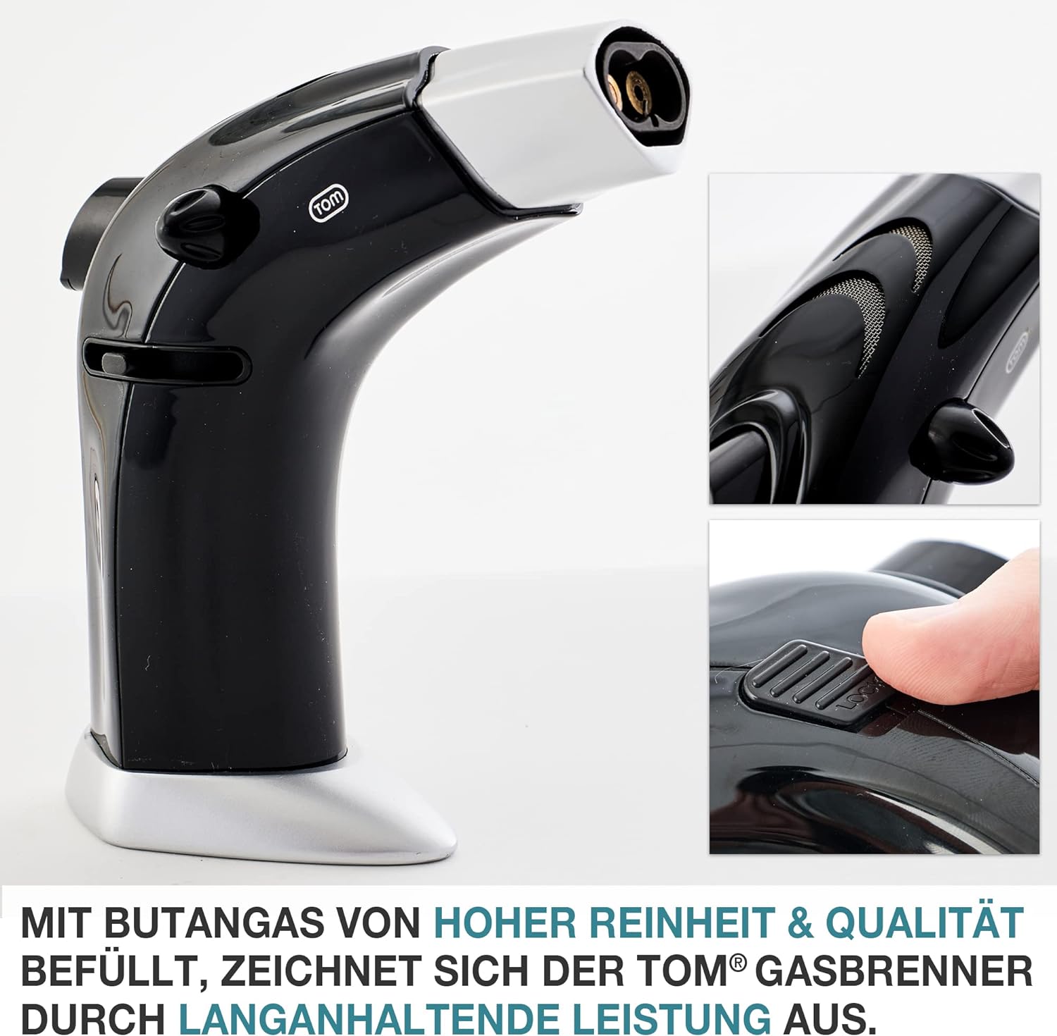 - UNIVERSAL BRENNER – In Küchen ist der TOM Flambierer beliebt zum Zubereiten von Creme Brulee, Grillen von Fleisch, Käse schmelzen oder Rösten. Beim Camper als Kohleanzünder. Als Lötlampe für DIY Schmuck