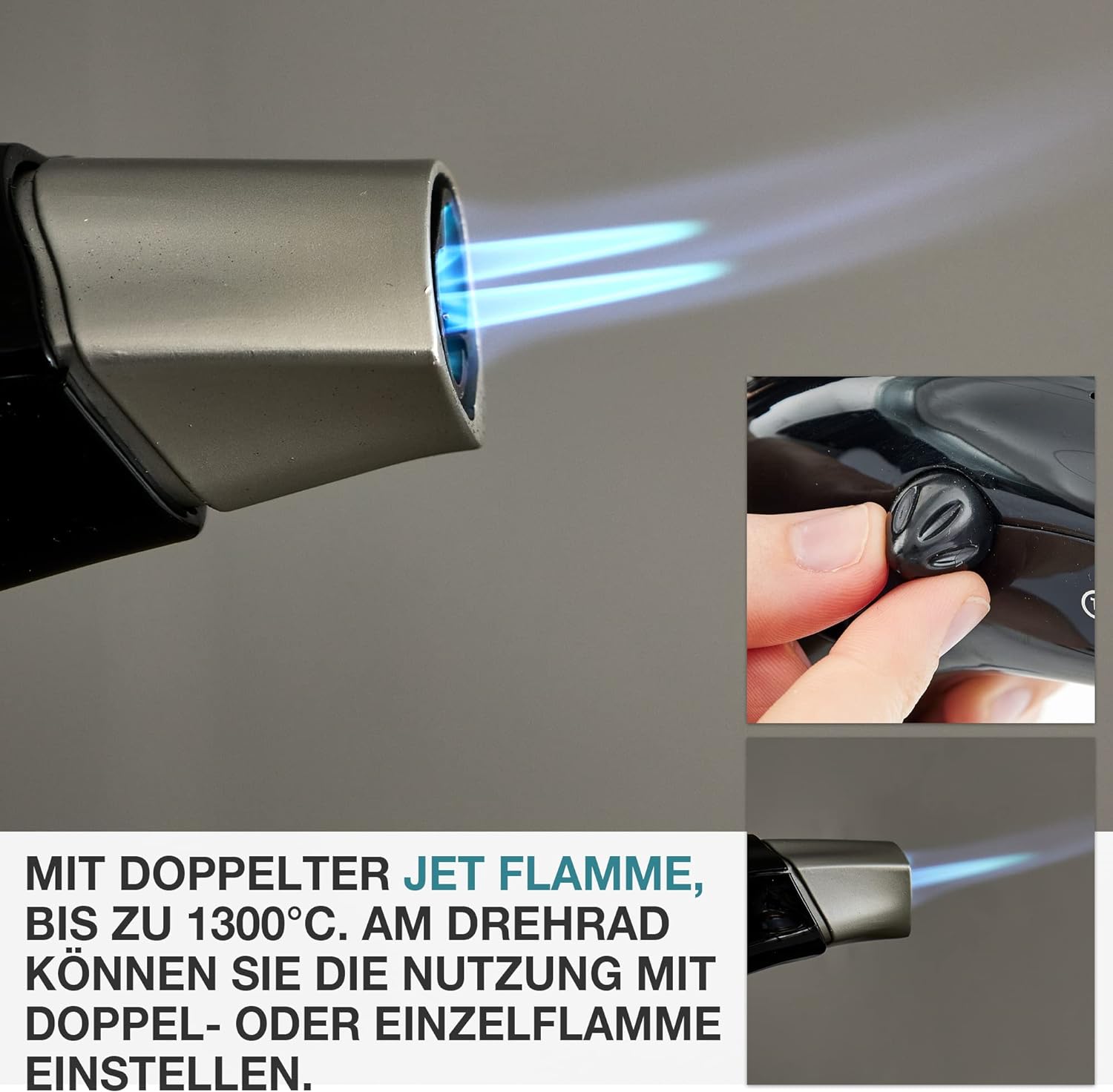 - DOPPELTE JETFLAMME – Der TOM Mini Bunsenbrenner ist mit doppelter Jet Flamme (bis zu 1300°C) ausgestattet. Nach Belieben mit einer oder beiden Flammen arbeiten. Flammengröße individuell einstellbar