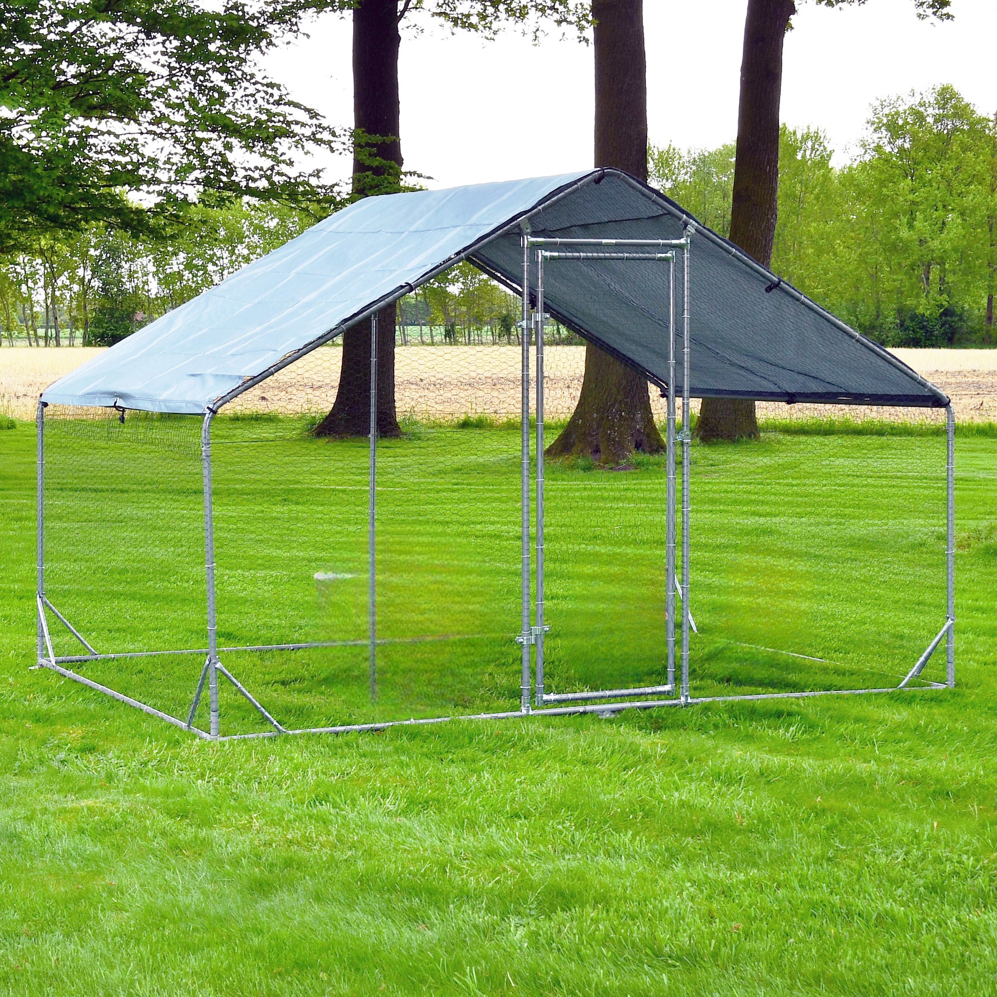 Freilaufgehege Hundegehege Hundezwinger Welpenauslauf Hundezaun 200x200x195cm aus Metall mit Sonnendach/Regenschutz