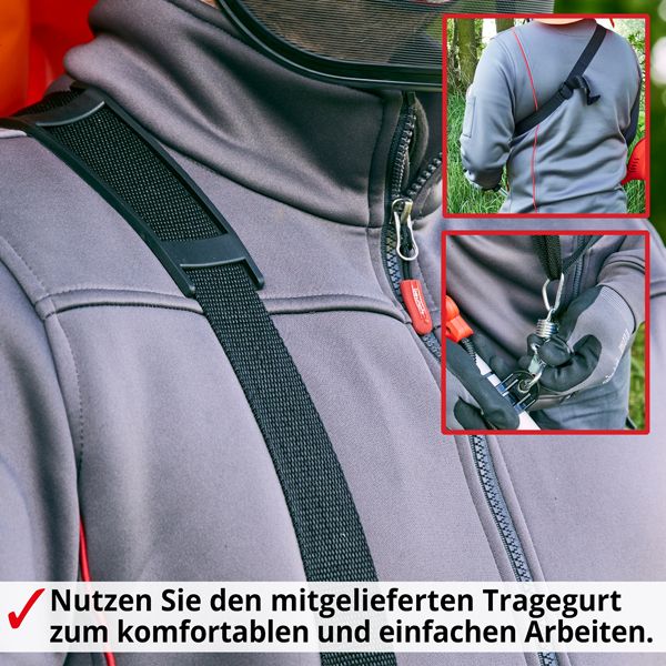 - Mitgelieferter Tragegurt ermöglicht ein ermüdungsfreies Arbeiten