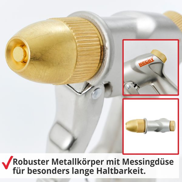 - Rostfreier Sprühkopf aus robustem Alu/Messing für eine lange Lebensdauer