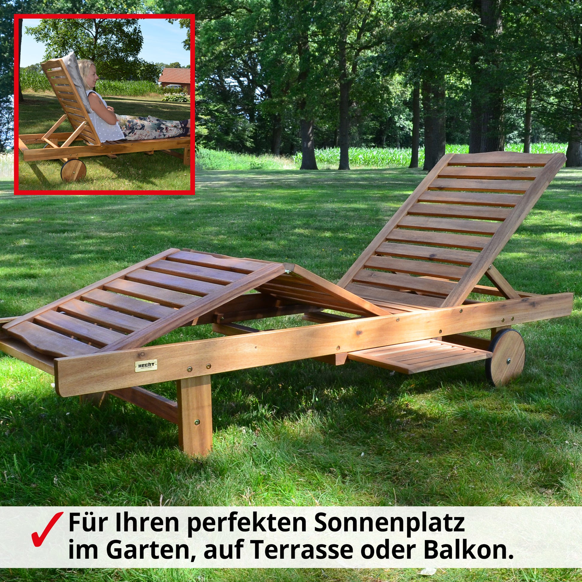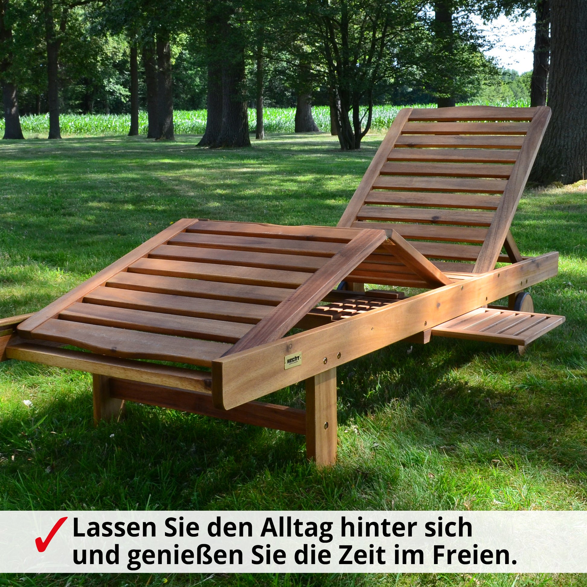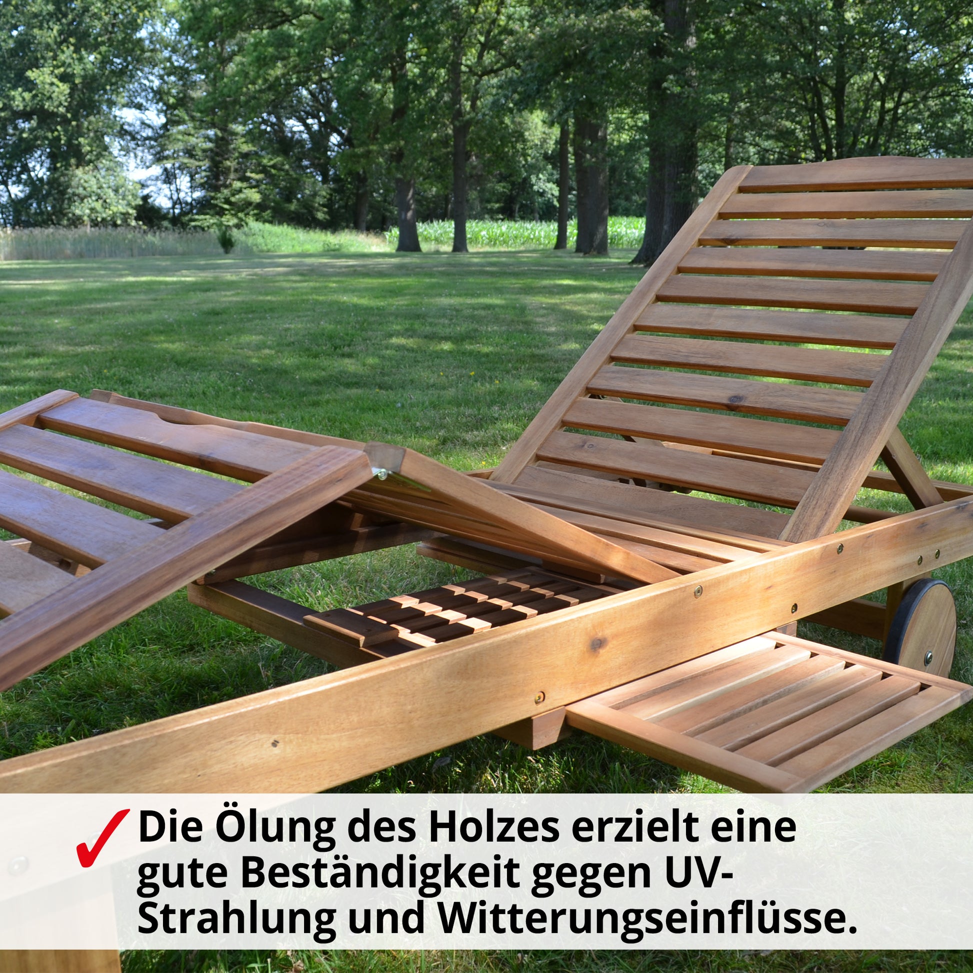 Mit der schönen Resort A Sonnenliege können Sie den Alltag hinter sich lassen und auf Ihrer Terrasse, im Garten oder auf dem Balkon entspannen. Das hellbraune, geölte Akazienholz sorgt für einen Hauch von Luxus in Ihrem Außenbereich und bietet Ihnen einen komfortablen Platz zum Entspannen.