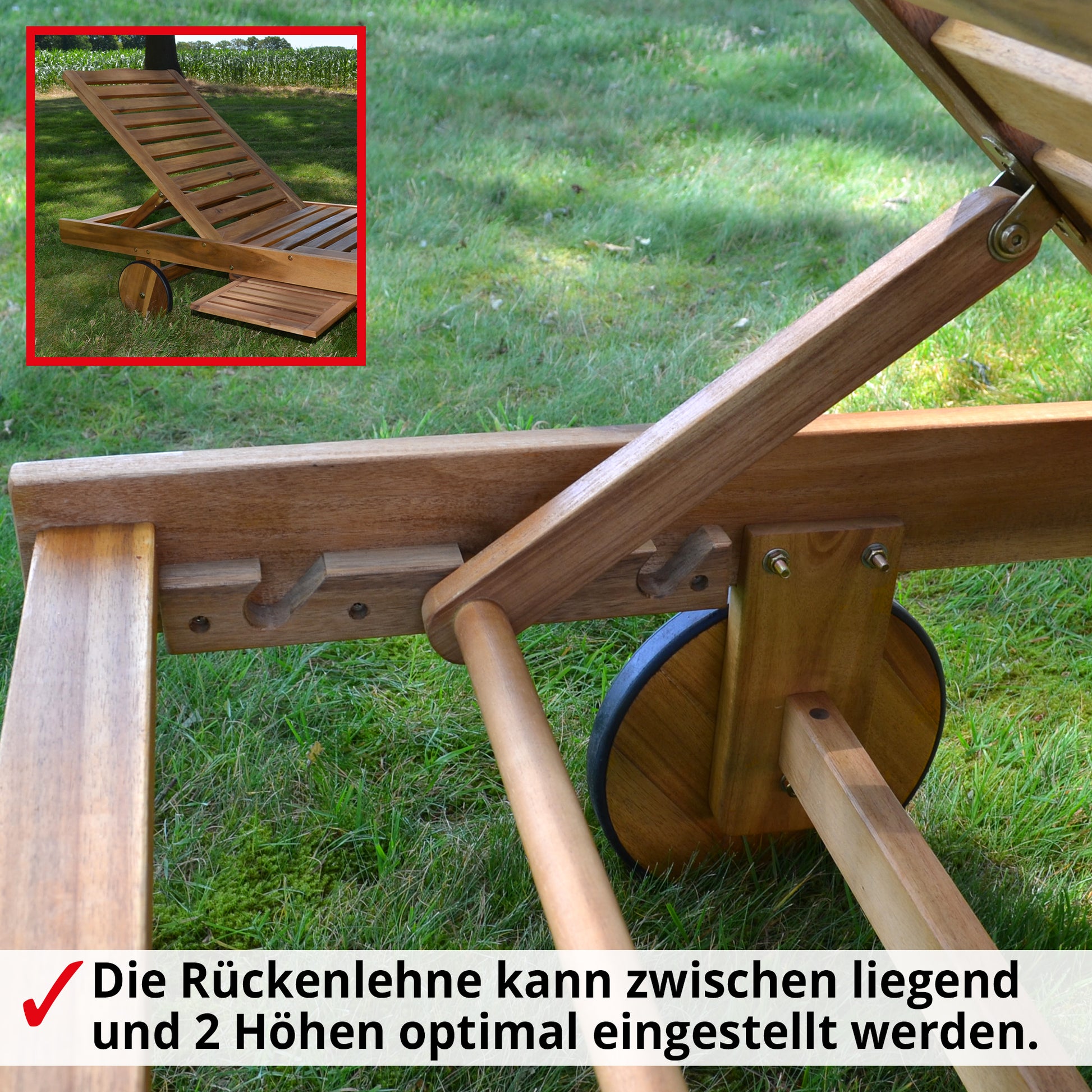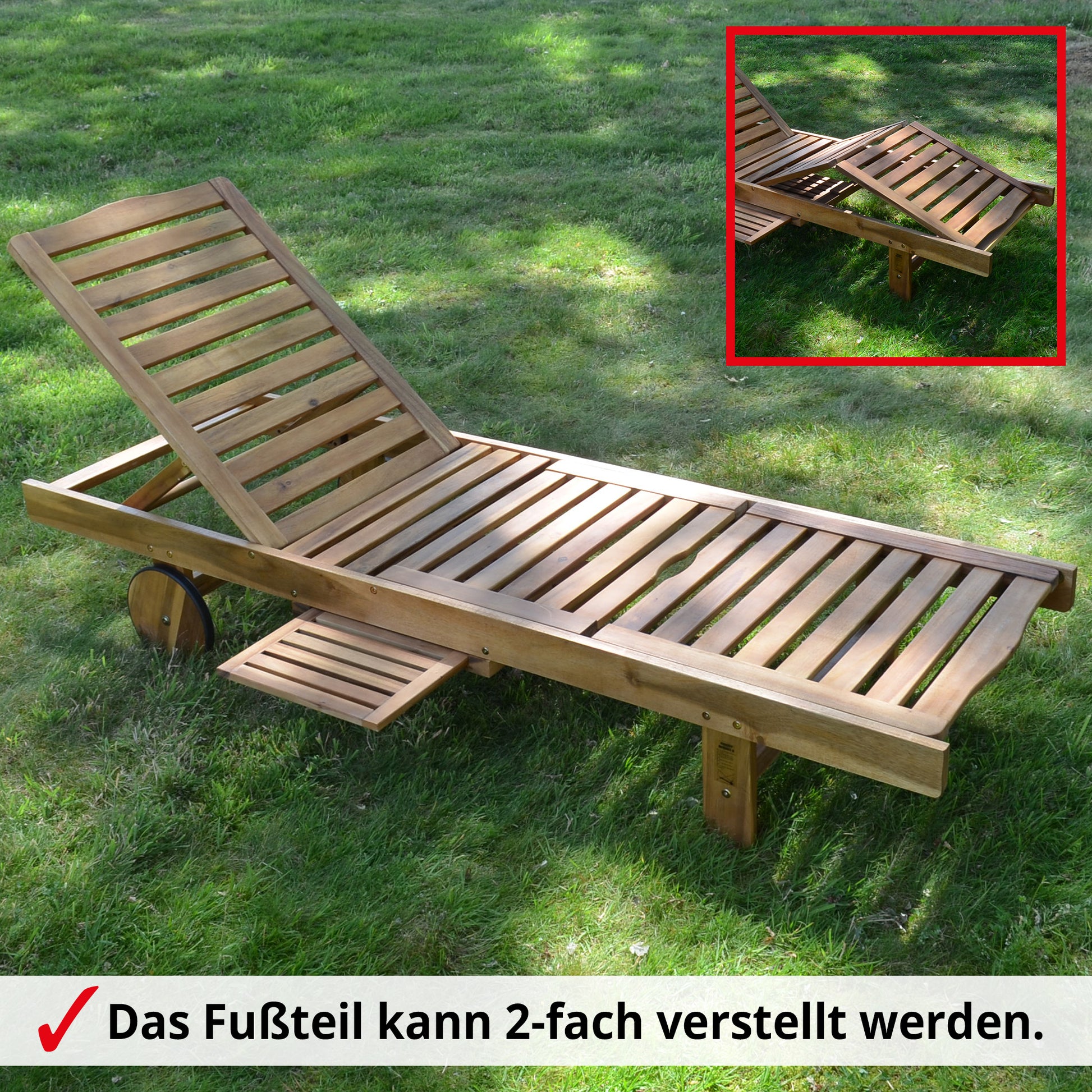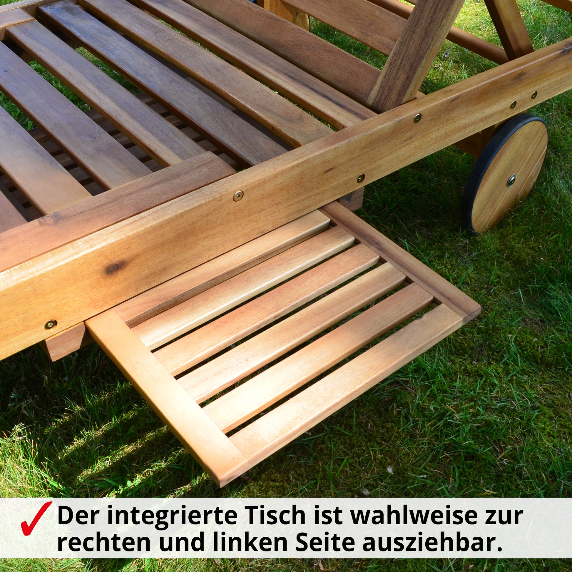 Mit der schönen Resort A Sonnenliege können Sie den Alltag hinter sich lassen und auf Ihrer Terrasse, im Garten oder auf dem Balkon entspannen. Das hellbraune, geölte Akazienholz sorgt für einen Hauch von Luxus in Ihrem Außenbereich und bietet Ihnen einen komfortablen Platz zum Entspannen.