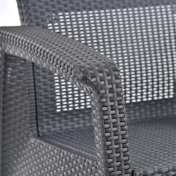 Die HECHT SIERRA Gartensitzgruppe kombiniert modernes Design mit hohem Sitzkomfort. Dank hochwertigem Polyrattan, bequemen Polsterauflagen und einer kompakten Größe eignet sie sich perfekt für Garten, Terrasse oder Balkon.