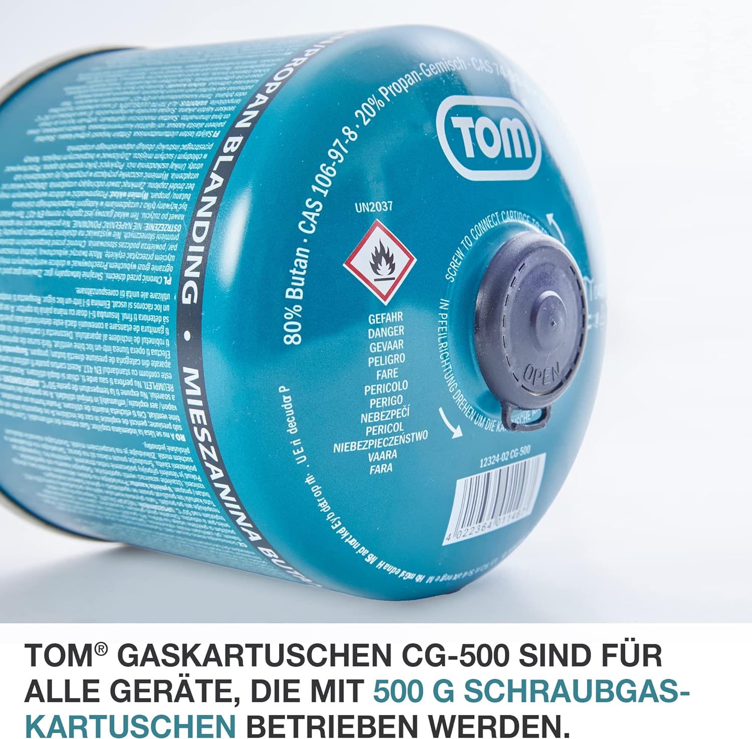 Die TOM CG-500 Gaskartusche ist der perfekte Begleiter für alle Outdoor-Aktivitäten. Ob Camping, Gartenarbeit oder Festivals – mit dieser hochwertigen 500 g Schraubgaskartusche sind Sie bestens ausgestattet. Das Sicherheits-Gewindeventil (EN417) ermöglicht sicheres und problemloses Anschließen an Ihre gasbetriebenen Geräte. Einfach die Sicherheitskappe entfernen und loslegen.