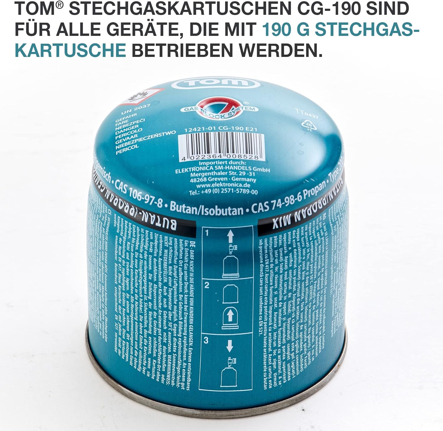 Die TOM Stech Gaskartuschen CG-190 sind vielseitig einsetzbar und eignen sich hervorragend für tragbare Geräte wie Campingkocher, Gasbrenner, Lötbrenner, Flammenwerfer, Unkrautvernichter und Abflämmgeräte. Diese Kartuschen bieten eine zuverlässige Brennstoffquelle, die viele Stunden konstantes Kochen, Unkrautbeseitigung oder Grillen ermöglicht.