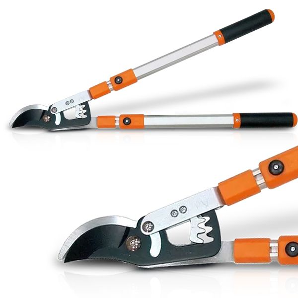 Dank der einfachen 6-fach Verstellmechanik können die Aluminium Arme schnell auf bis zu 104 cm verlängert werden. So erreichen Sie auch höher gelegene Äste kinderleicht.