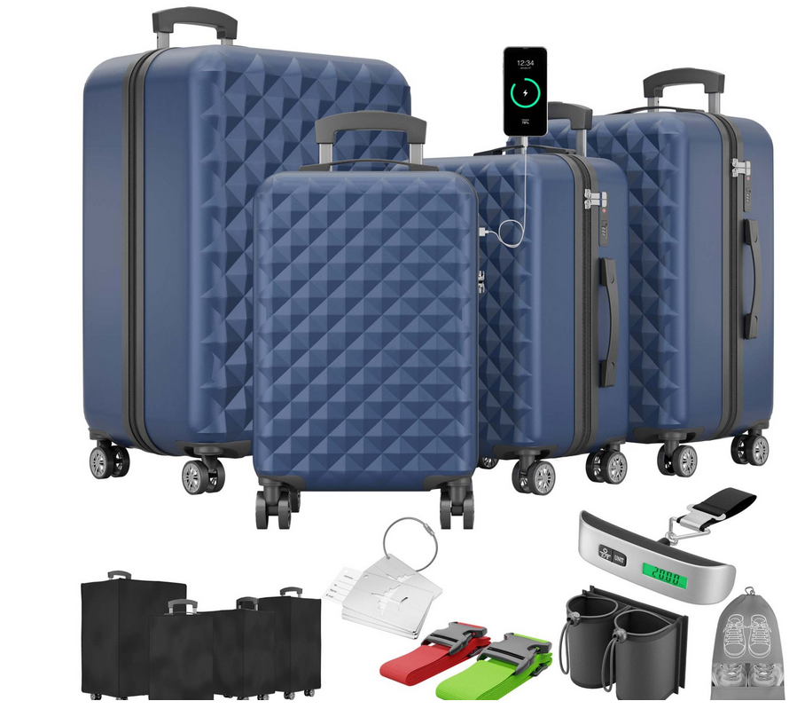 Hartschalenkoffer Kofferset Reisetrolley Hand Koffer Dunkel Blau 4-teilig