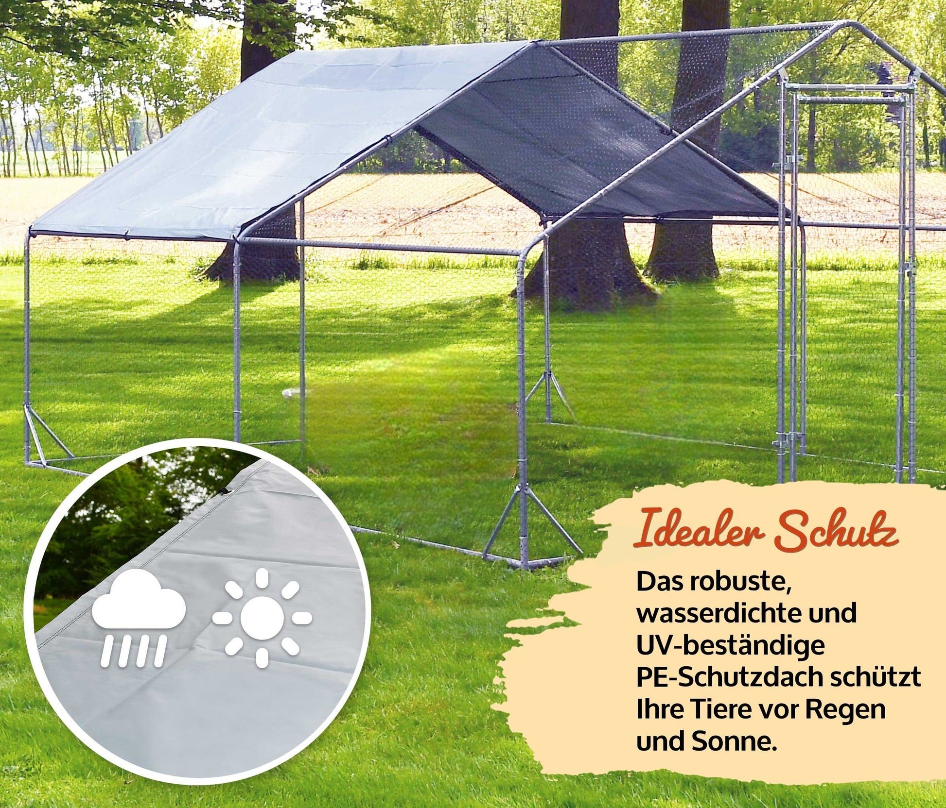 Hasen Kaninchen Freilaufgehege Auslauf Freigehege 300x200x195cm aus Metall mit Sonnendach/Regenschutz
