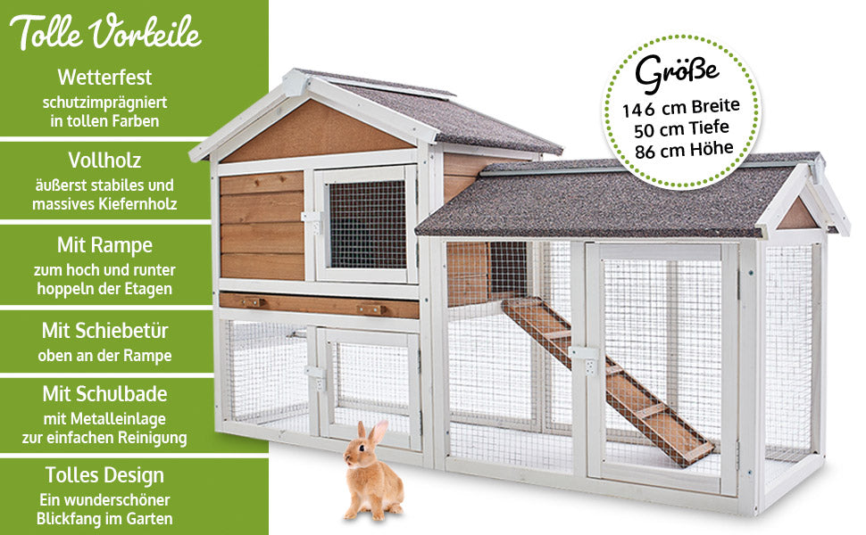 Der wunderschöne Hasenstall "Hofstadl" bietet Ihnen und Ihren Tieren viel Komfort. Der Kleintierstall mit dem großen Freilaufgehege garantiert genug Auslauf und ist ideal für Kaninchen, Hasen oder Meerschweinchen.