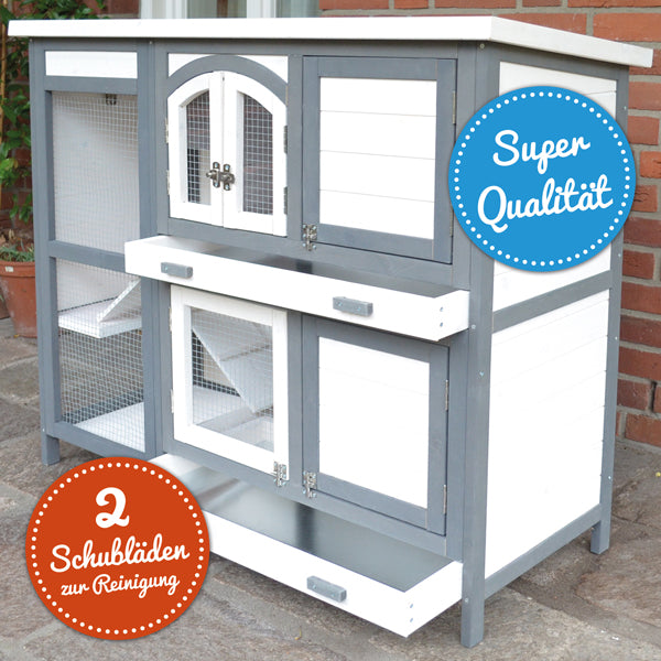 Hasenstall Kaninchenstall Meerschweinchenstall Krümel Grau/ Weiss