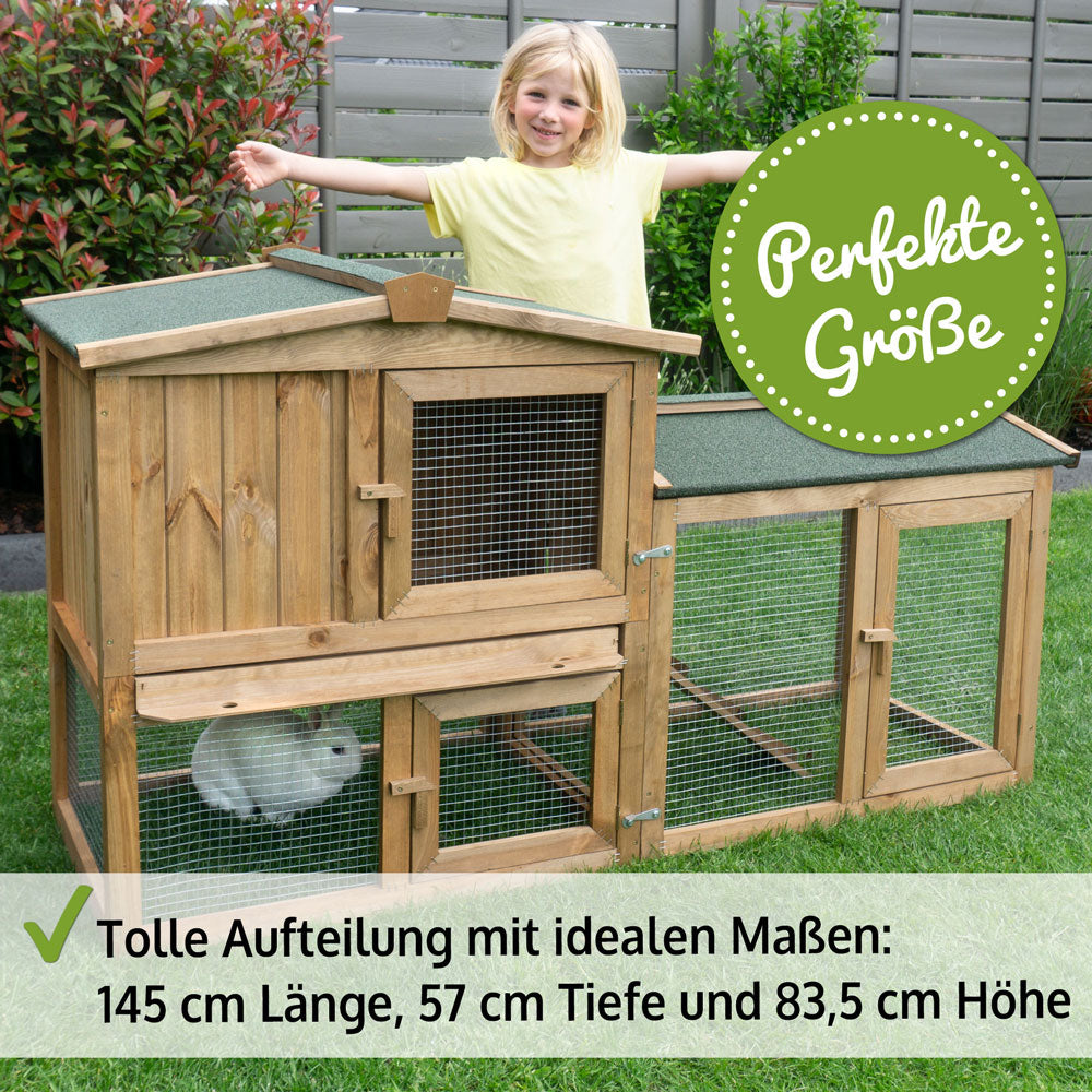 Der Hasenstall "Meister Lampe" bietet deinen Tieren viel Platz und zahlreiche Aufenthaltsmöglichkeiten.