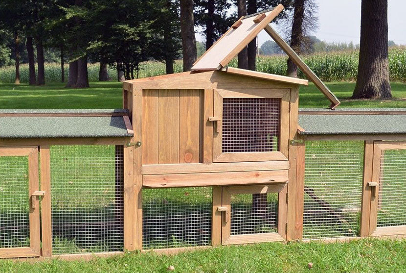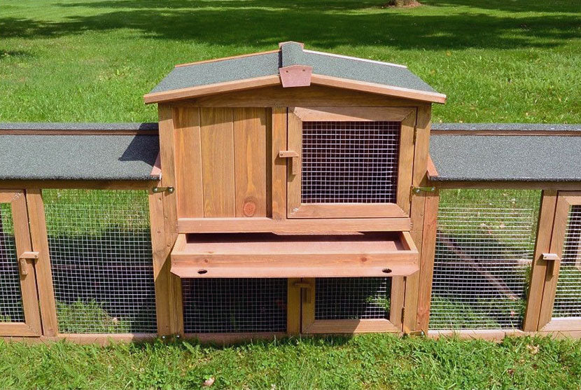 Der Kaninchenstall Sheriff ist ein besonders ausgeklügeltes Modell. Die drei Elemente lassen sich zur Reinigung einfach abkoppeln und werden anschließend wieder aneinander gehakt.