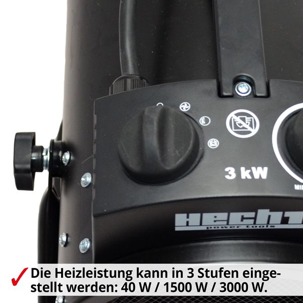 - Stufe 3: 3000 Watt für intensive Heizleistung