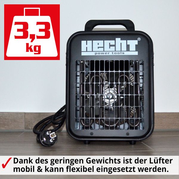 Mit dem mobilen Heizlüfter HECHT 3500 bringen Sie schnell und einfach Wärme in Ihre Umgebung. Der leistungsstarke Heizlüfter eignet sich ideal für den Einsatz in kleinen Räumen, wie Werkstätten, Garagen, Kellern, Baustellen oder Lagerräumen und sorgt für eine angenehme Wärme in kurzer Zeit.