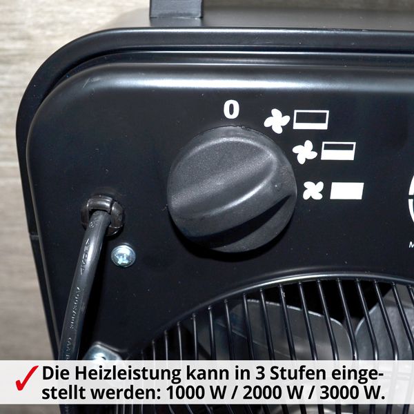 - Stufe 3: 3000 Watt Heizleistung
