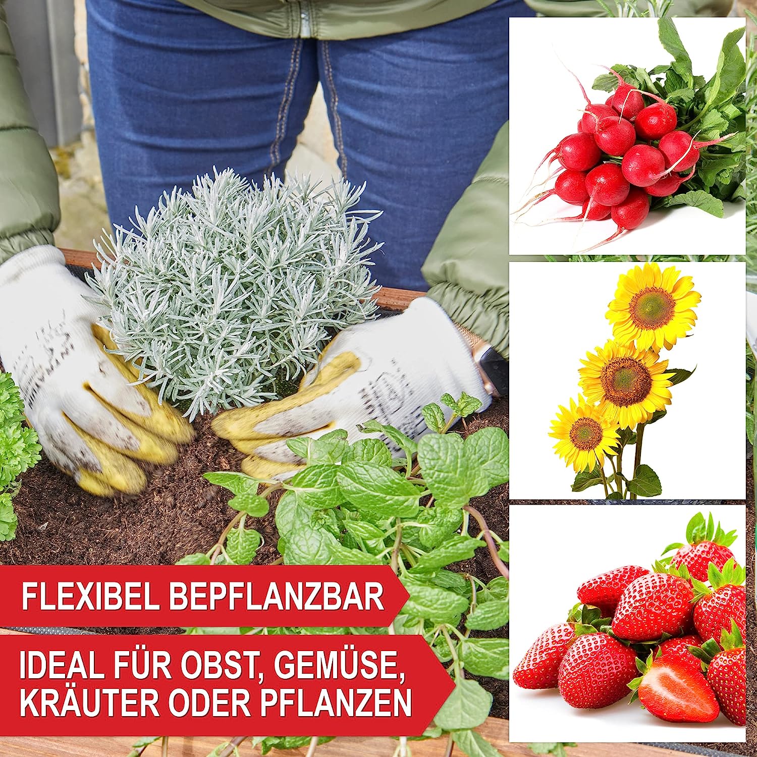 Das Hochbeet ist ideal zur Anzucht oder zum Anbau von Obst, Gemüse oder Kräutern geeignet. Der großzügige Pflanzkasten bietet Ihren Pflanzen viel Platz zum wachsen. Wahlweise können Sie auch verschiedene Blumen in das Hochbett pflanzen und es so in ein schickes Blumenbeet verwandeln.
