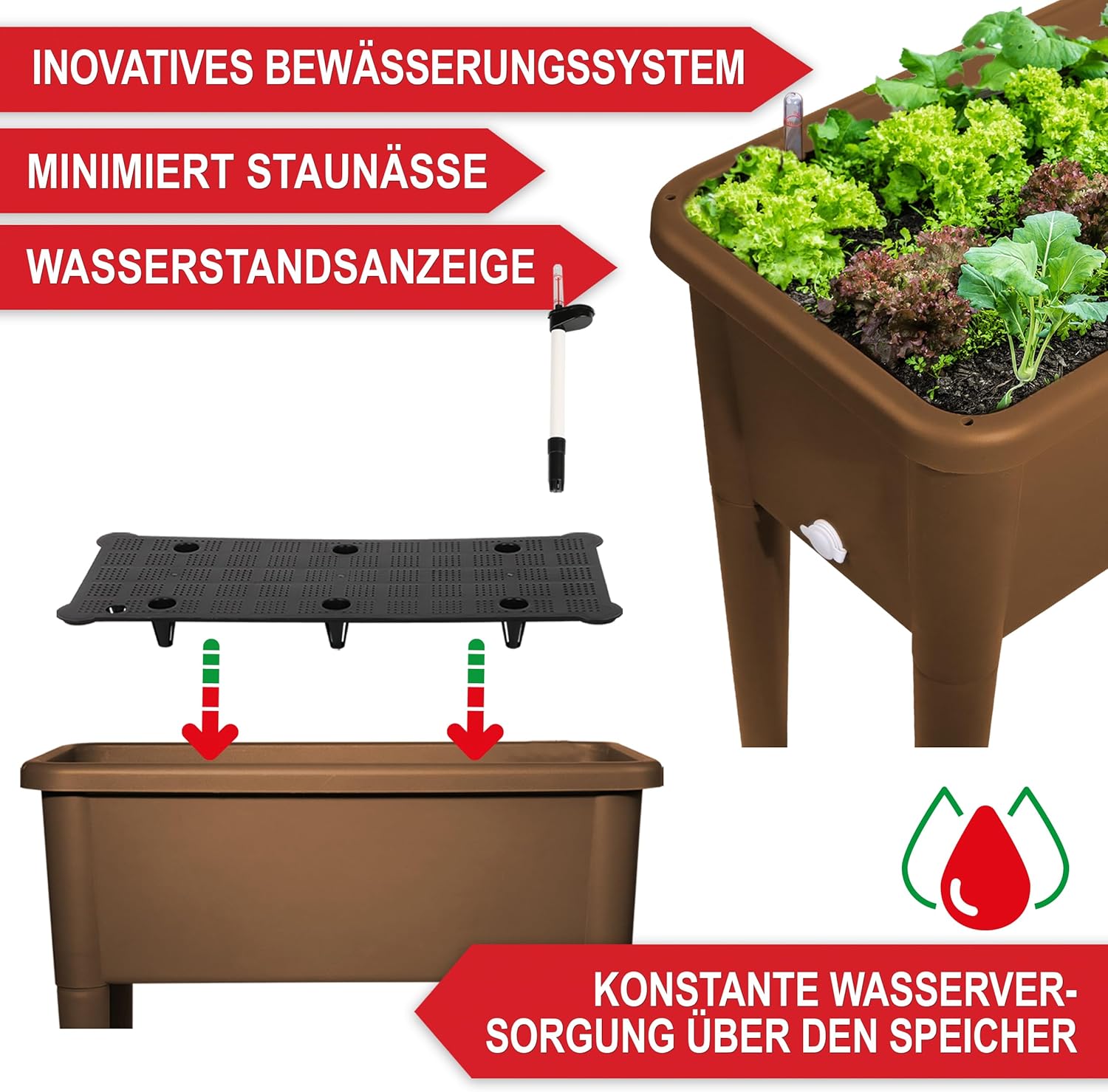 - Zwischenbodensystem verhindert Staunässe und sorgt für konstante Wasserversorgung