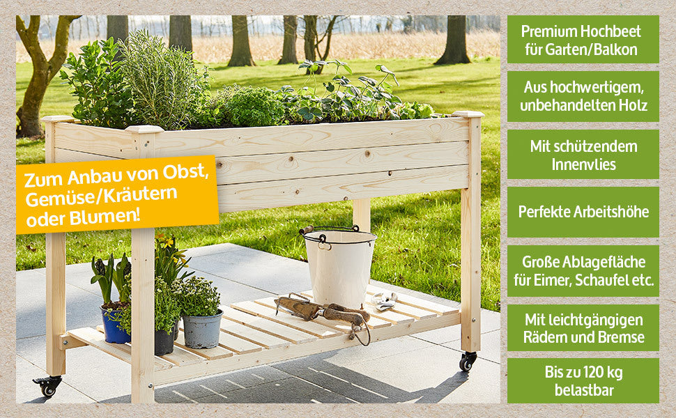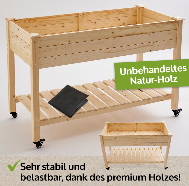 PREMIUM HOLZ – Das langlebige anzucht-Beete-kit mit zusätzlicher Ablage und Innenvlies besteht aus hoch-wertigem stabilem Kiefernholz. Der stabile Pflanzentisch überzeugt durch die gute Verarbeitung