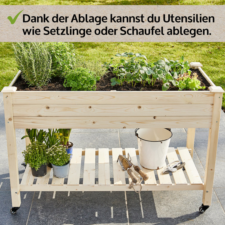 STABILE ABLAGE – Die praktische Ablage unter dem Pflanzkasten/ Hochbeet groß/Kräutergarten, bietet Stauraum für Pflanz-Zubehör wie Erde, Töpfe, Handschuhe etc. so haben Sie alles direkt zur Hand