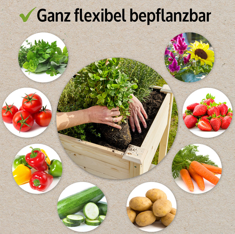 Vielfältige Nutzung – Stabiles Hochbeet zum idealen Anbau und Anzucht von Gemüse, Obst, Kräuter (Kräuterbeet, Pflanzenkasten) oder Blumen und anderen Pflanzen im Garten, auf der Terrasse /Balkon oder auch als Sichtschutz
