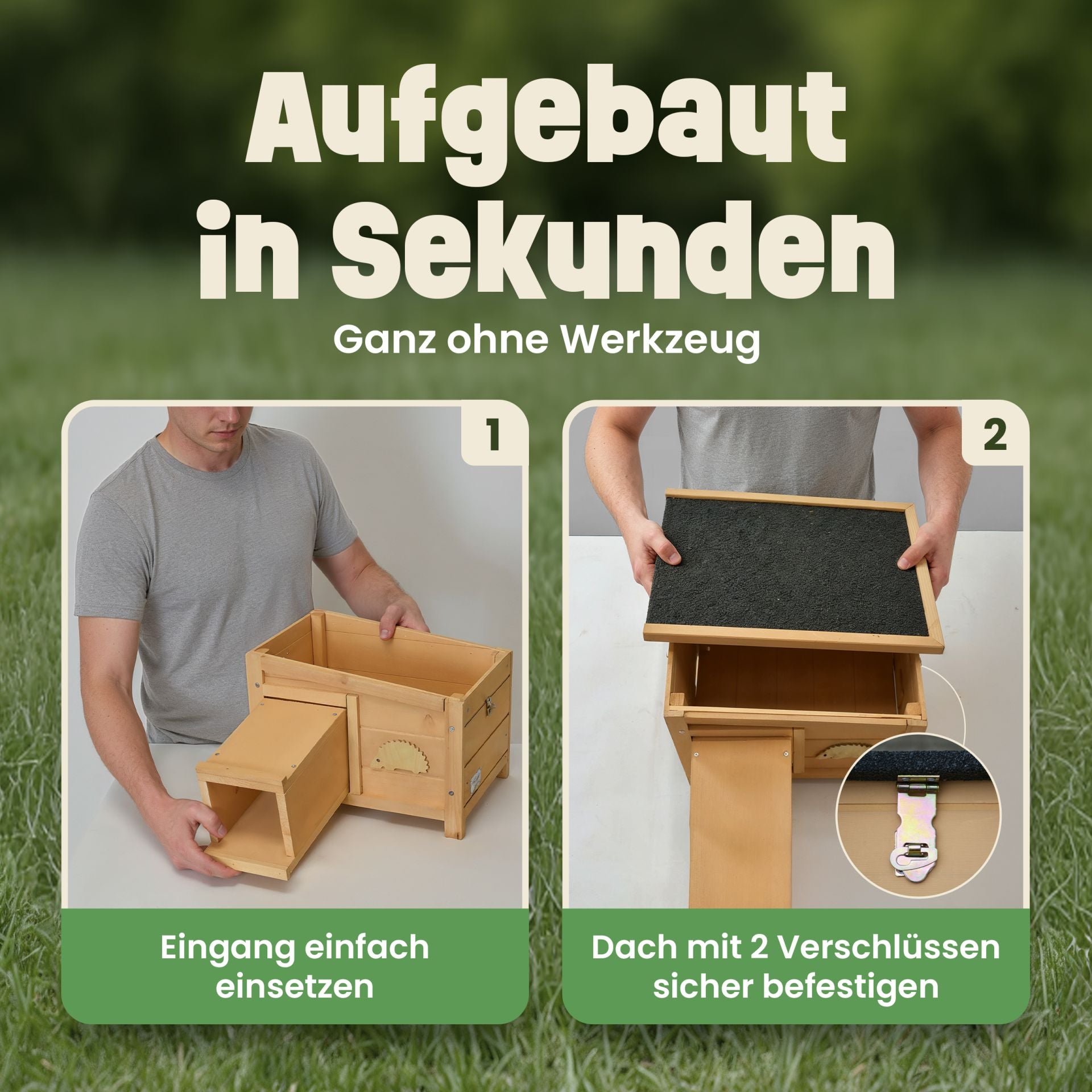 In Sekunden aufgebaut – Eingang einsetzen & Dach befestigen