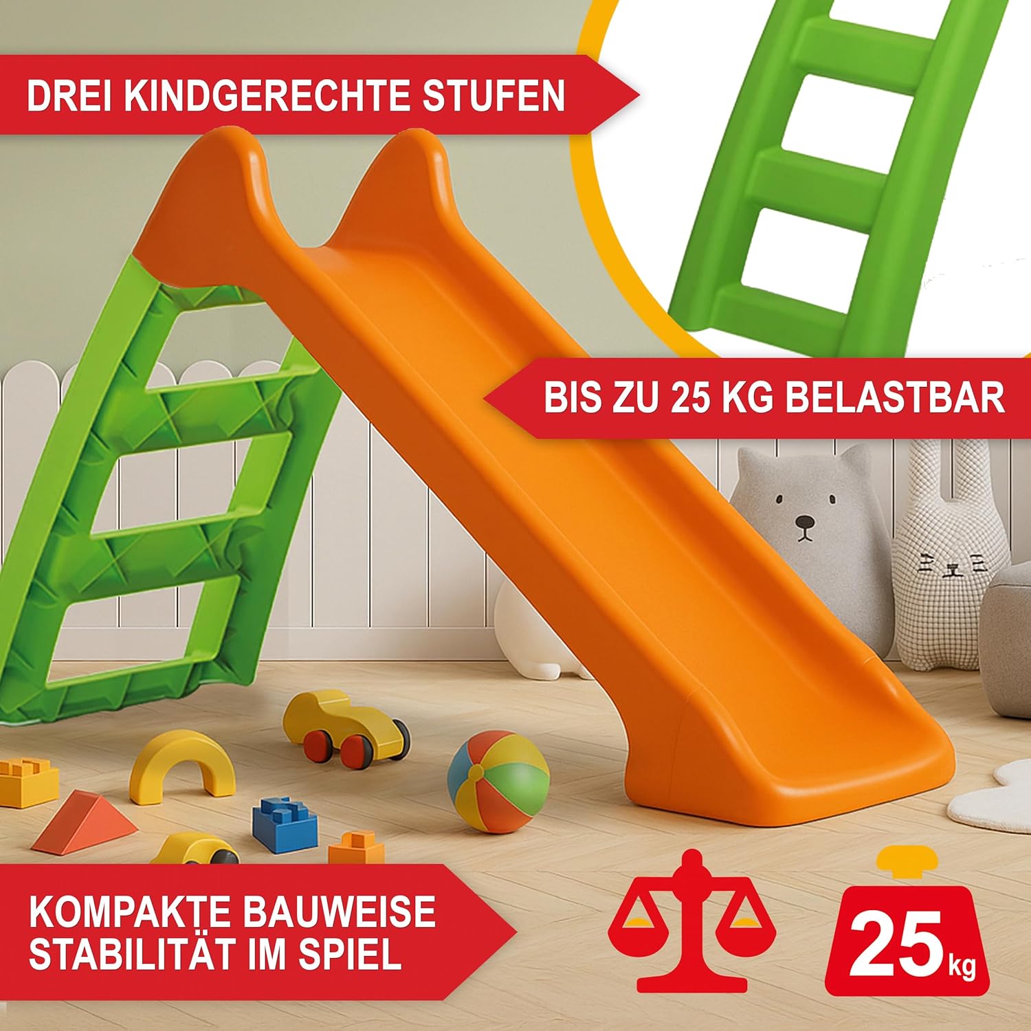 • SICHER & STABIL – Die drei kindgerechten, stabilen Stufen der Treppe überwunden und ab geht es ca. 120?cm lang nach unten. Sicher für Kinder mit abgerundeten Ecken & Kanten. Bis zu 25?kg belastbar