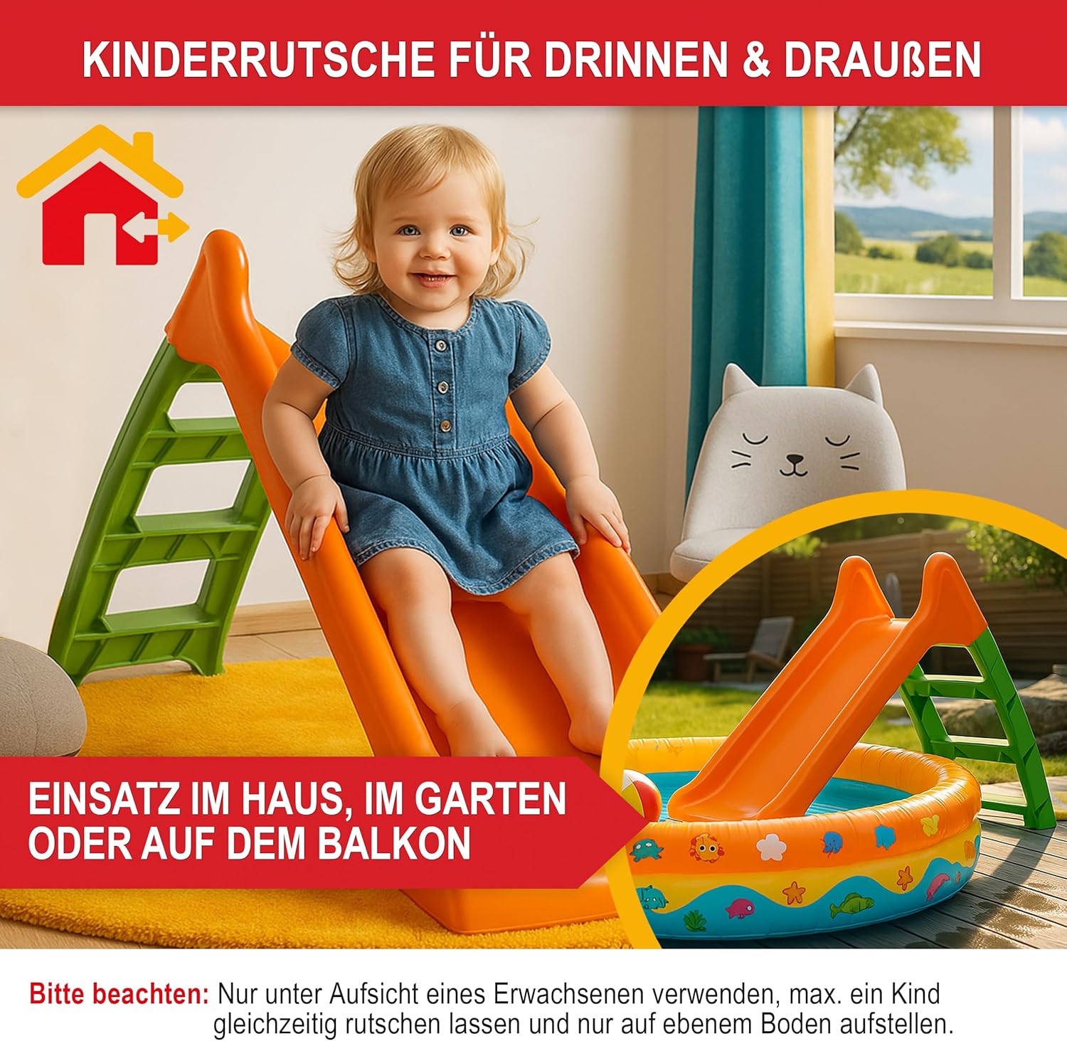 Kinderrutsche für Kinder – Kleinkind Rutsche mit Wasseranschluss – Indoor und Outdoorspielzeug – 120 cm Rutschbahn orange – Babyrutsche ab 10 Monaten
