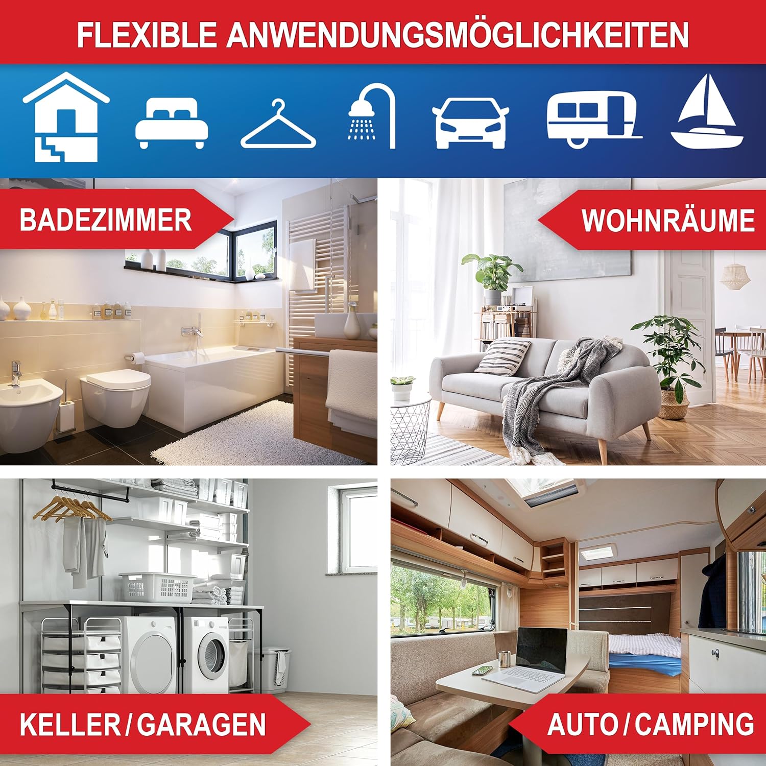 • Für Wohnräume, Keller, Garage, Dachboden, Bad, Auto etc.