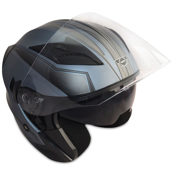 Der moderne Motorradhelm 52627 von Hecht bietet hervorragenden Schutz, viele Einstellmöglichkeiten und ein sportliches Design.