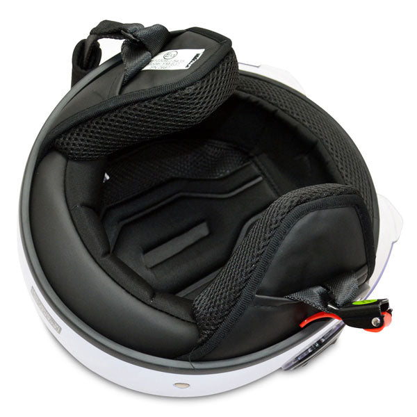 Der Kinnriemen ist verstellbar. Somit kann der Motorradhelm an den Nutzer individuell angepasst werden. Der Kinnschutz ist ebenso verstellbar und sitzt demnach immer an der passenden Stelle. Das Innenfutter von dem Motorradhelm kann man herausnehmen. Es ist atmungsaktiv und sorgt für angenehmen Tragekomfort.