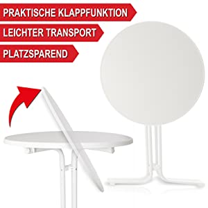 Ihre Zufriedenheit liegt uns am Herzen. Deshalb legen wir besonderen Wert auf die hochwertige und langanhaltende Qualität unserer Produkte – von der Entwicklung über das Material bis hin zur Herstellung. Mit dem klappbaren Bistrotisch erhalten Sie ein erstklassiges Produkt, das durch Design, Funktionalität und Langlebigkeit überzeugt.