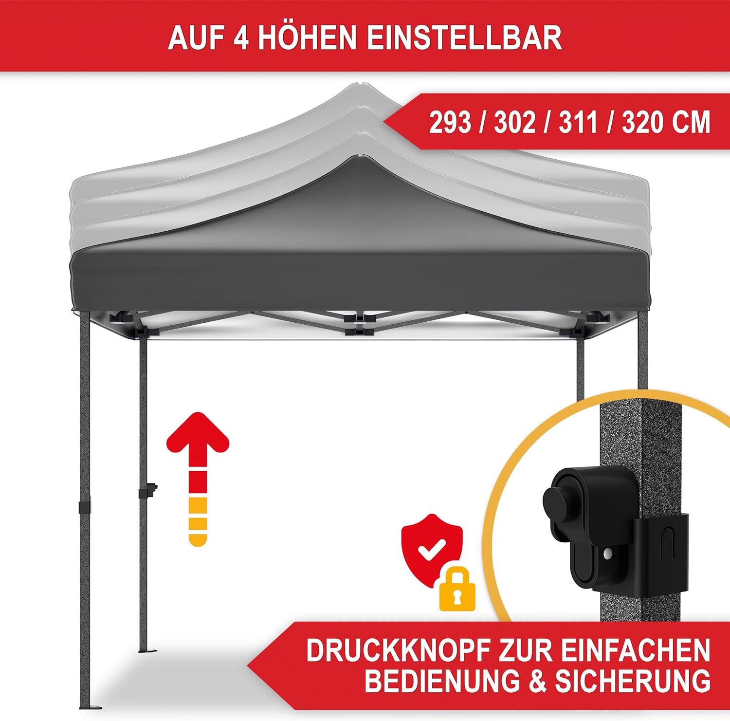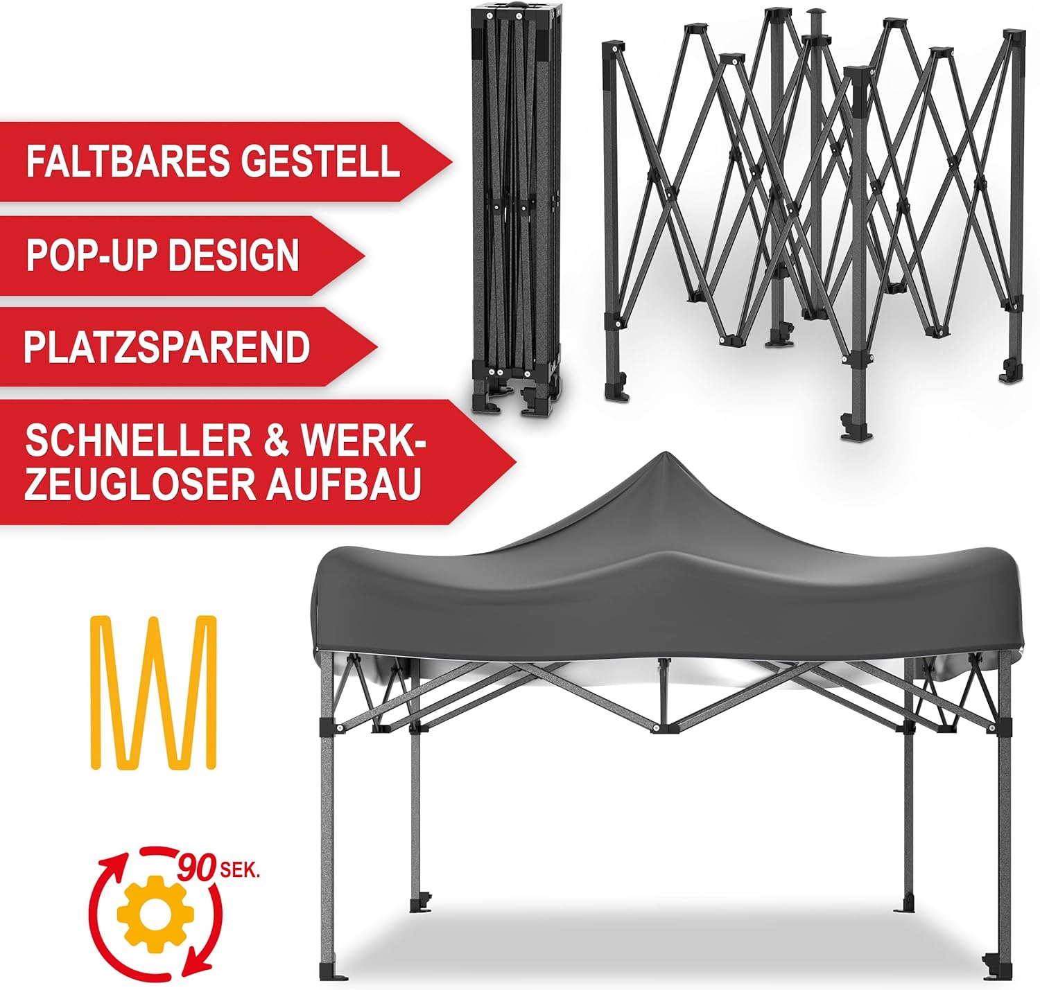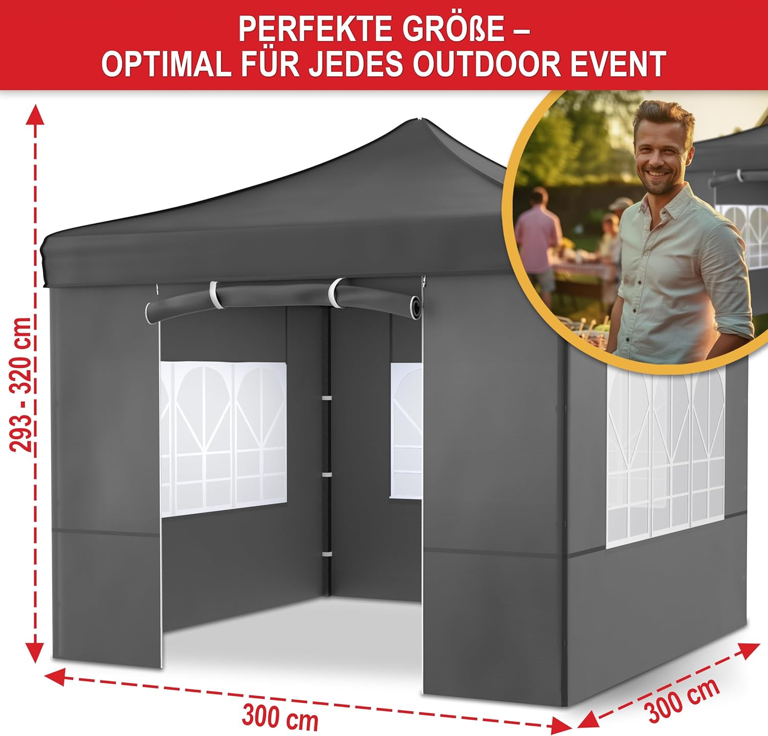 Partyzelt Pavillon Grau Garten 3 x 3 Meter