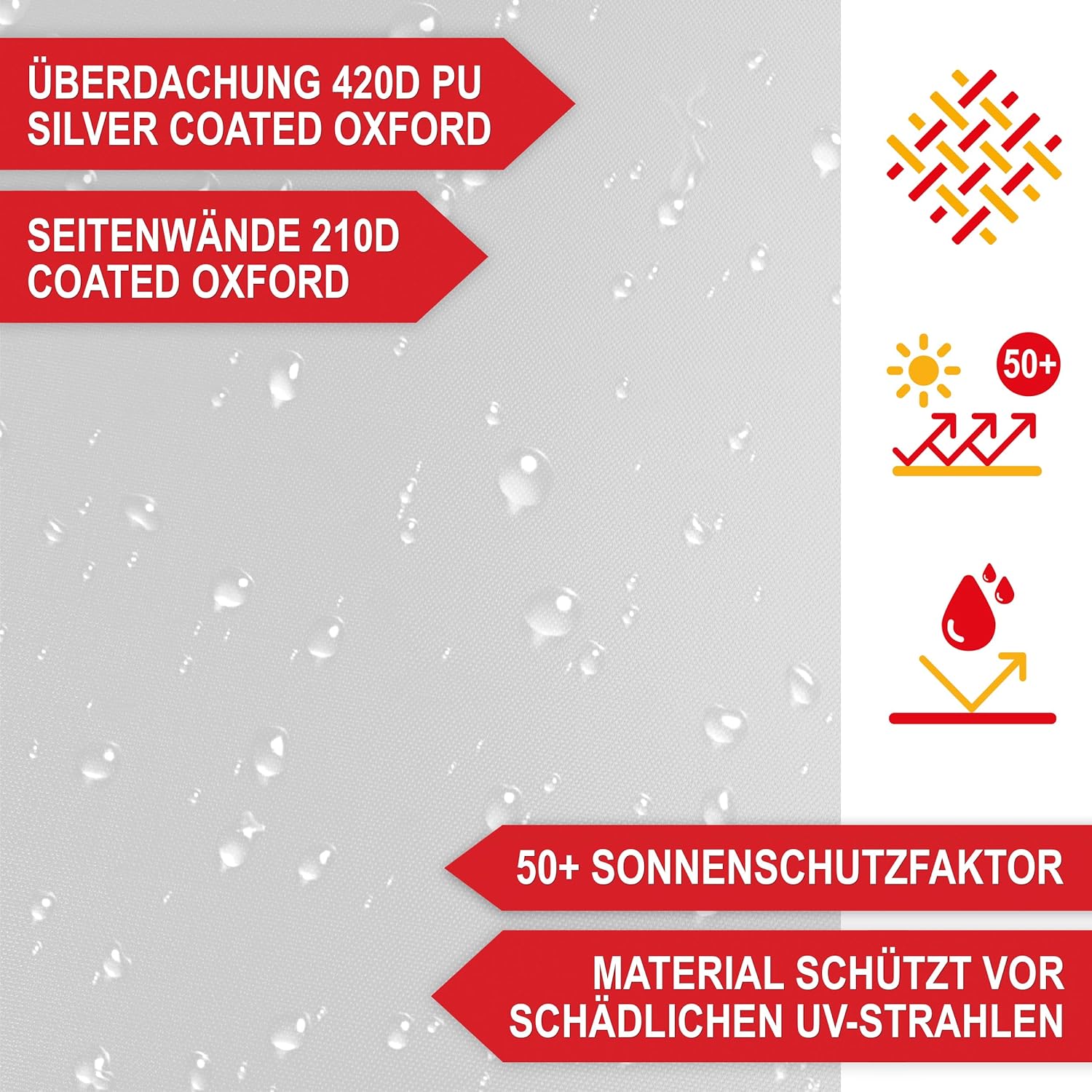 Überdachung aus 420 PU Silver Coated Oxford Stoff, wasserdicht und Sonnenschutzfaktor 50+