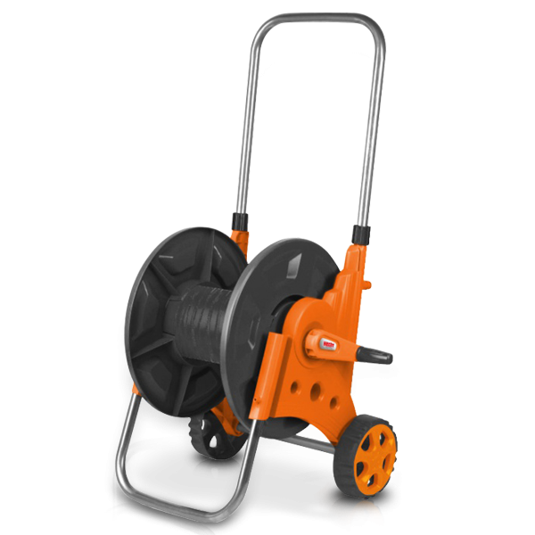 - Schlauchtrommel aus Kunststoff verleiht dem Wagen Leichtigkeit