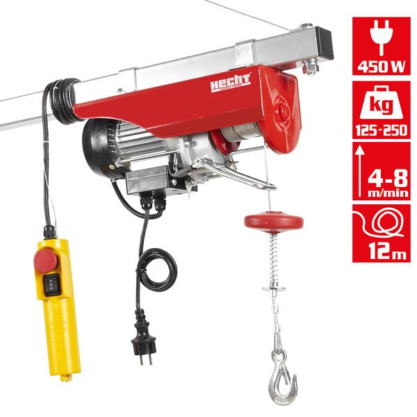 - Maximale Hubkraft von 125 kg bei einfachem Seil und 250 kg bei doppeltem Seil