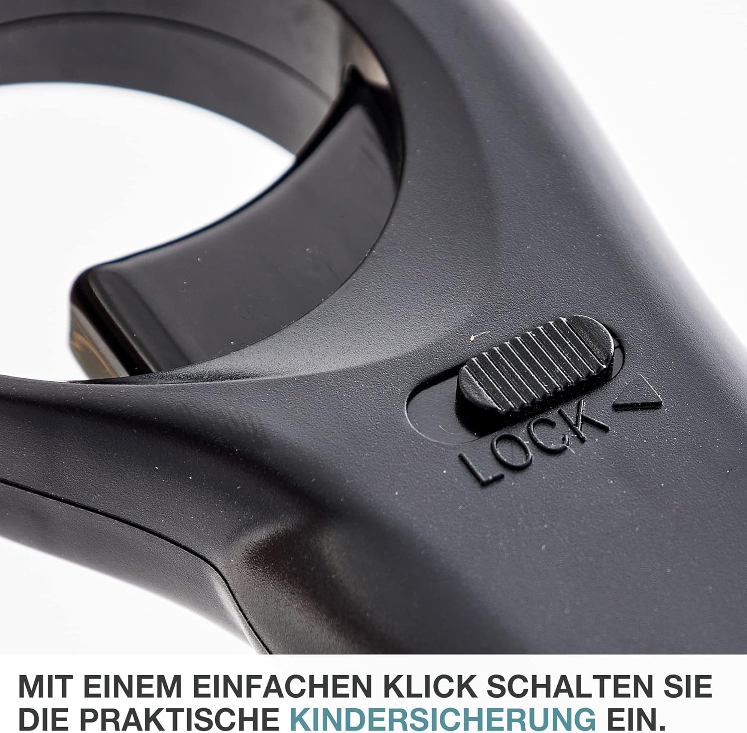 - Mit Kindersicherung – einfach per Klick aktivierbar