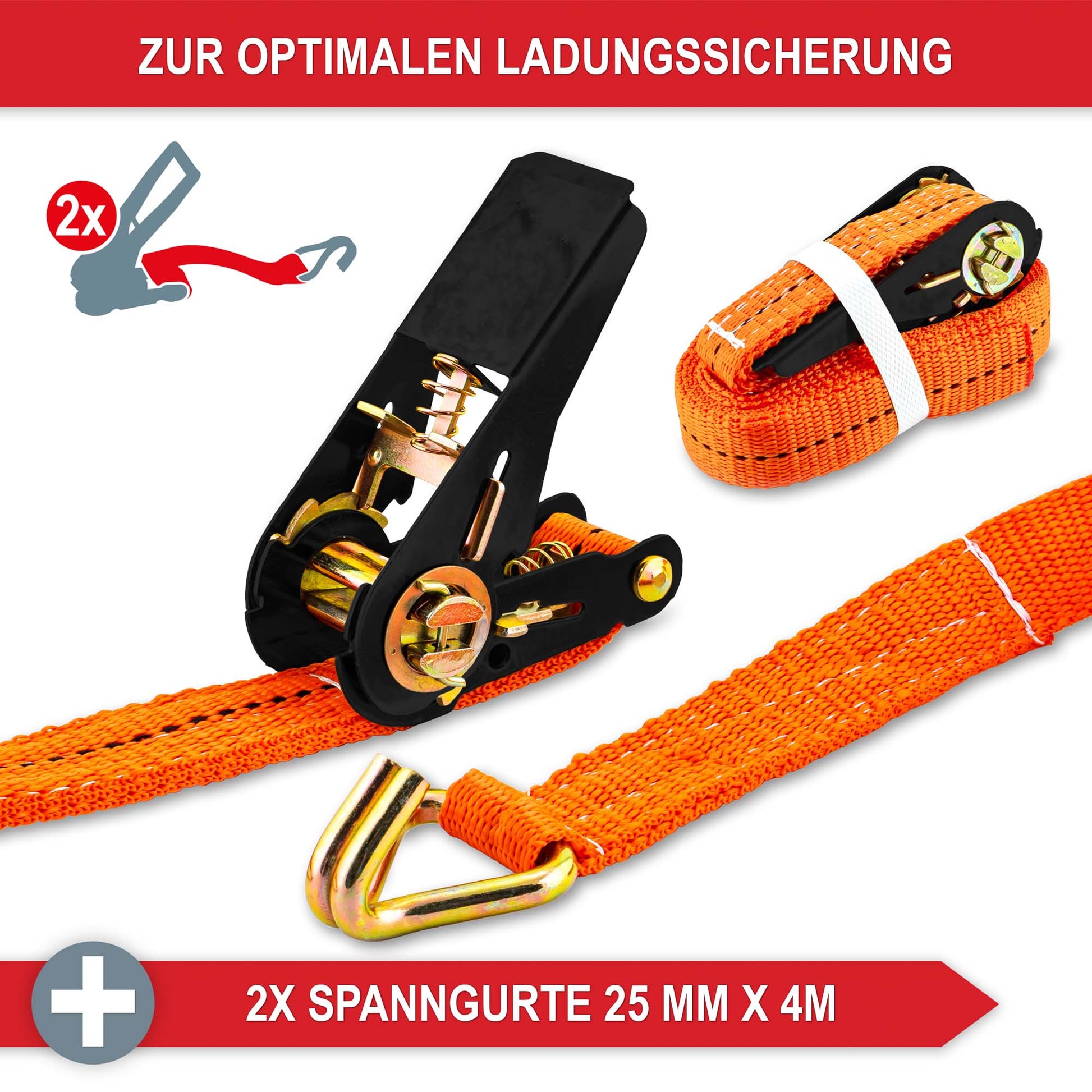 Zwei robuste Spanngurte mit 25 mm Breite und 4 m Länge