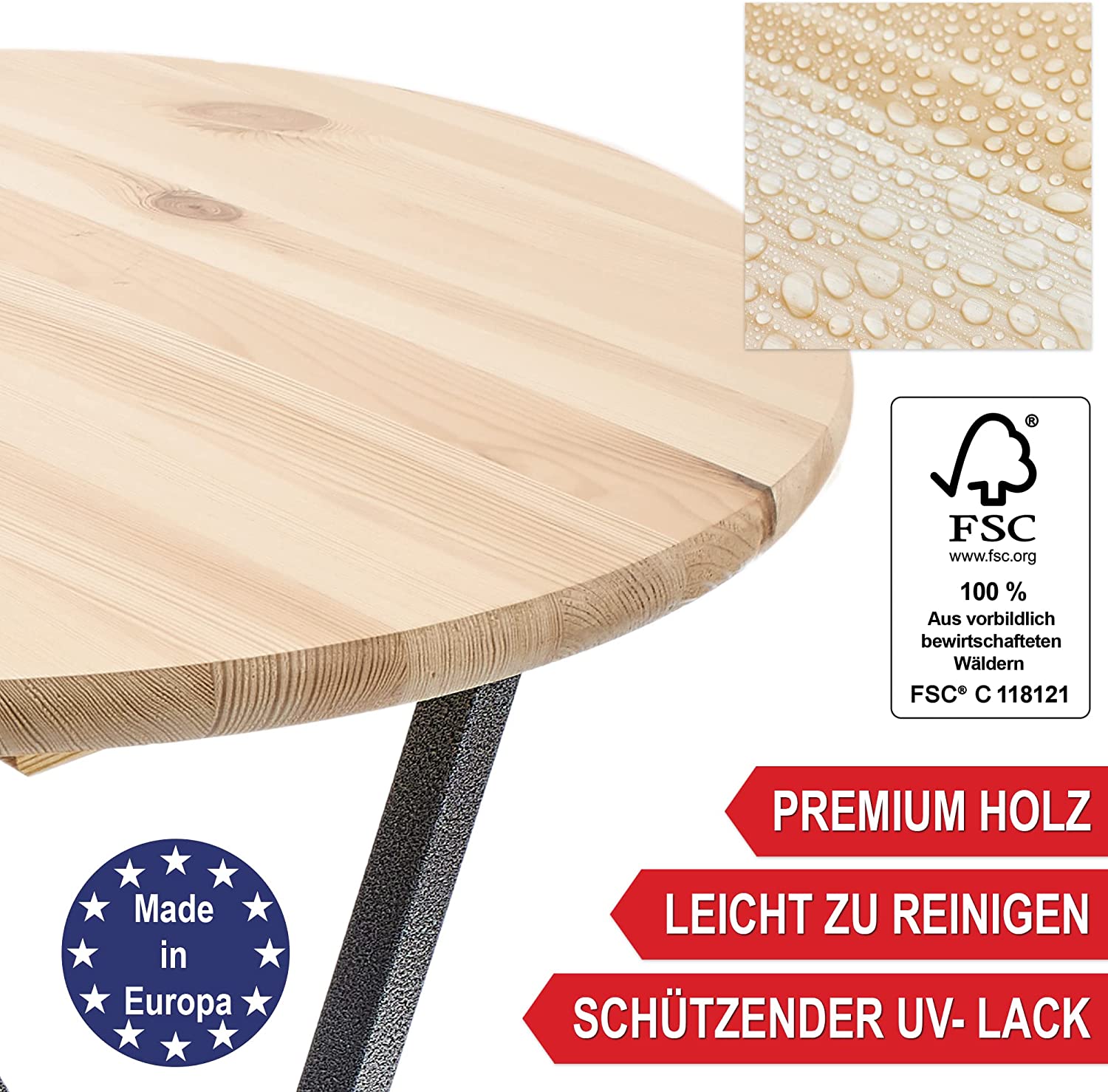 3 cm starke Tischplatte aus hochwertigem Vollholz mit UV-Lackierung