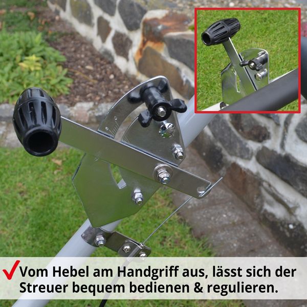 - Erleichtert das Ziehen und Schieben des Streuwagens