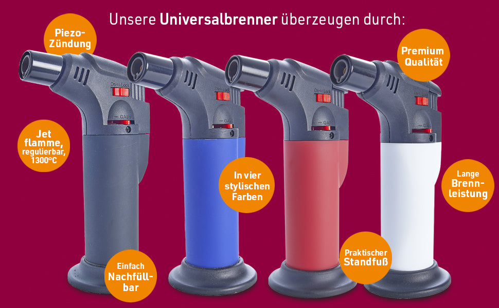 Die unverzichtbaren Begleiter für jede Situation. Diese Sturmfeuerzeuge verfügen über eine windfeste, konzentrierte Jet Flamme, die Temperaturen bis zu 1300°C erreicht. Dank des praktischen Standfußes lassen sich die Feuerzeuge überall sicher platzieren. Die elektrisch zündenden UNILITE Feuerzeuge sind perfekt zum Anzünden von Kerzen, dem Kamin oder dem Grill im Outdoor-Bereich. Ohne eine zuverlässige Flamme sind solche Aufgaben kaum zu bewältigen.